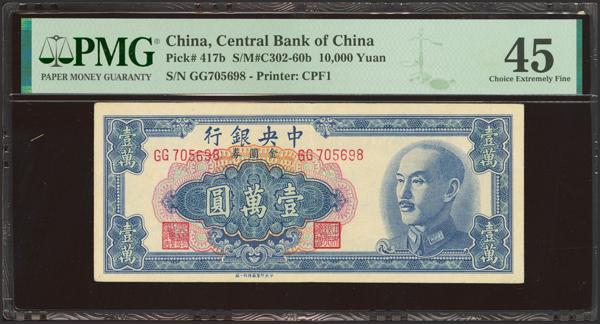 CHINA. 10000 Gold Yuan. 1949. Central Bank of China. (Pick: 417b, SM: 302-60b). PMG45.