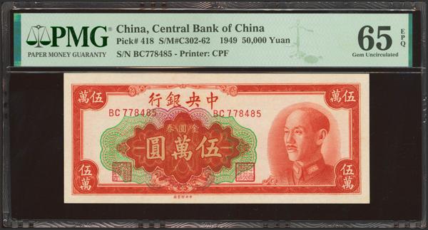 CHINA. 50000 Gold Yuan. 1949. Central Bank of China. (Pick: 418, SM: C302-62). PMG65EPQ.