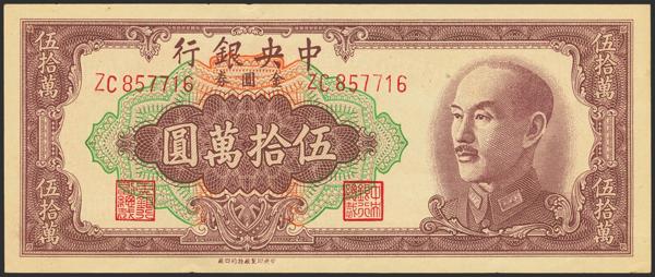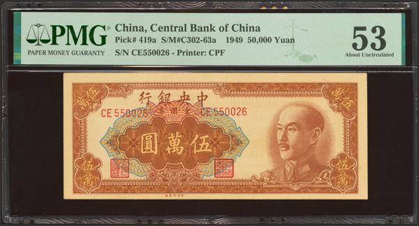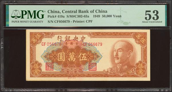 CHINA. 50000 Gold Yuan. 1949. Central Bank of China. (Pick: 419a, SM: C302-63a). PMG53.