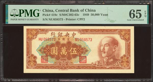CHINA. 50000 Gold Yuan. 1949. Central Bank of China. (Pick: 419c, SM: C302-63c). PMG65EPQ.