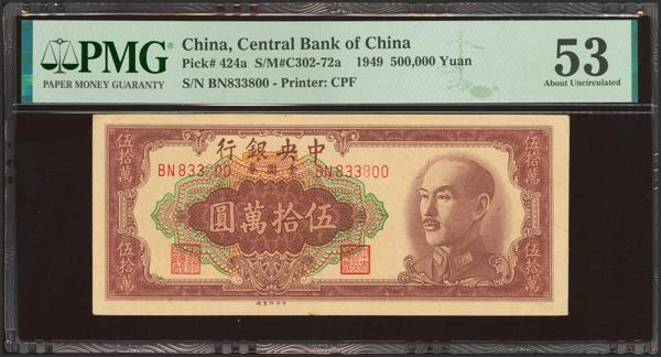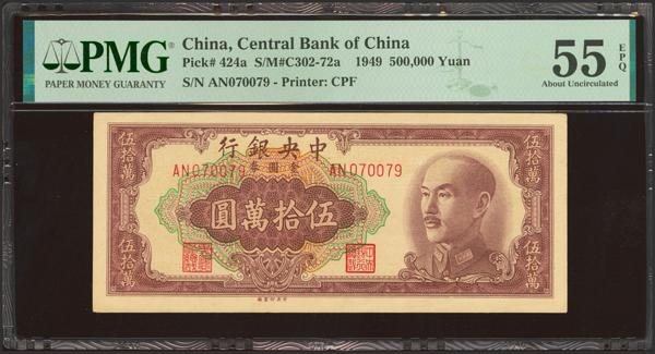 CHINA. 500000 Gold Yuan. 1949. Central Bank of China. (Pick: 424a, SM: C302-70a). PMG55EPQ.