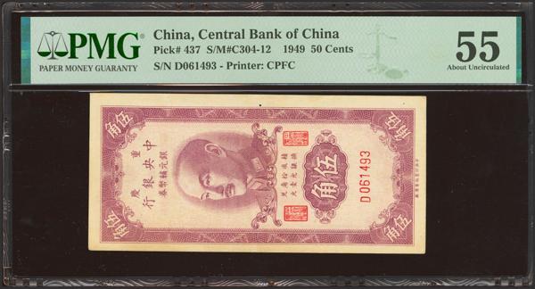 CHINA. 50 Cents. 1949. Central Bank of China. (Pick: 437, SM: C304-12). PMG55 (small hole).