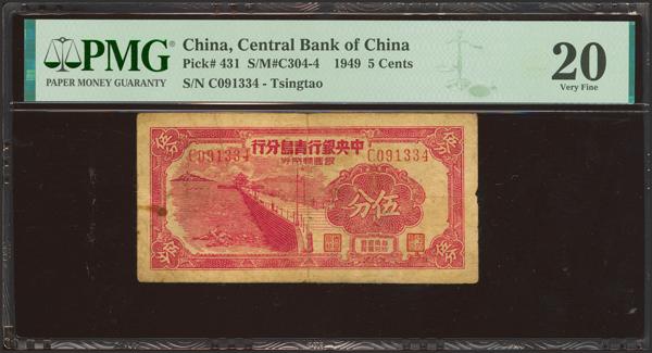 CHINA. 5 Cents. 1949. Central Bank of China. Tsingtao Branch. (Pick: 431, SM: C304-4). PMG20 (rust).