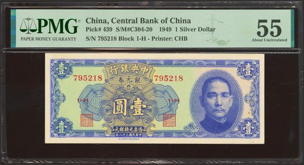CHINA. 1 Silver Dollar. 1949. Central Bank of China. (Pick: 439, SM: C304-20). Pinhole. PMG55 (staple holes).
