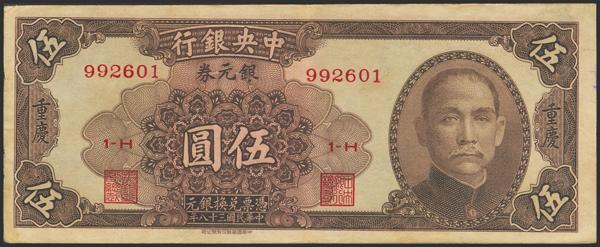 CHINA. 5 Silver Dollars. 1949. Central Bank of China. Chungking. (Pick: 443). More than Very Fine.