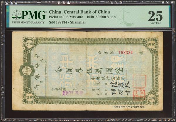 CHINA. 50000 Yuan. 1949. Central Bank of China. Circulating Cashier’s Check. (Pick: 449, SM: C302). PMG25.