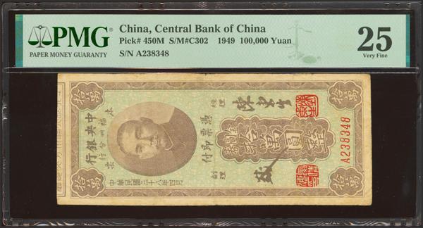 CHINA. 100000 Gold Yuan. 1949. Central Bank of China. Foochow. (Pick: 450M, SM: C302). PMG25.