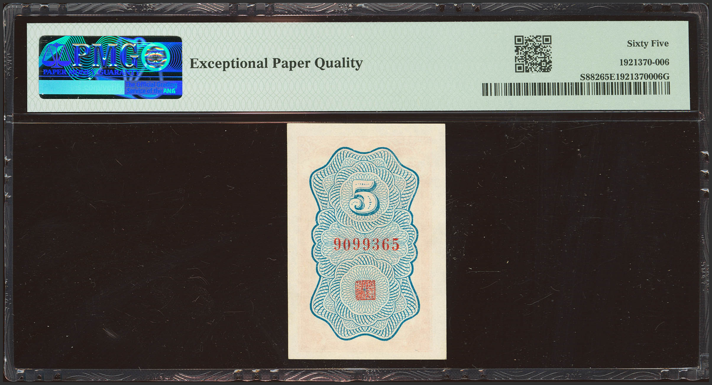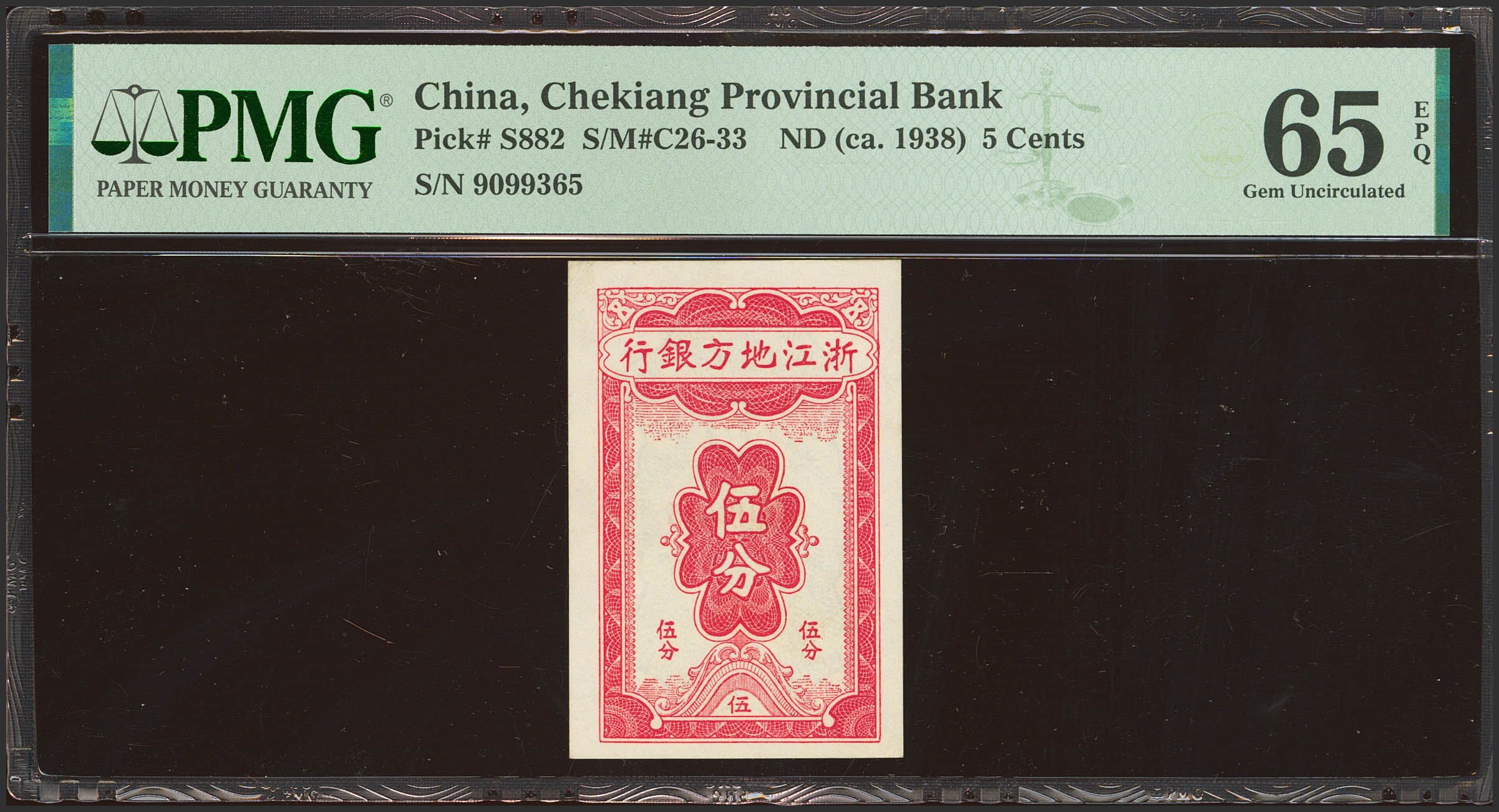 CHINA. 5 Cents. (1938ca). Chekiang Provincial Bank. (Pick: S882, SM: C26-33). PMG65EPQ.
