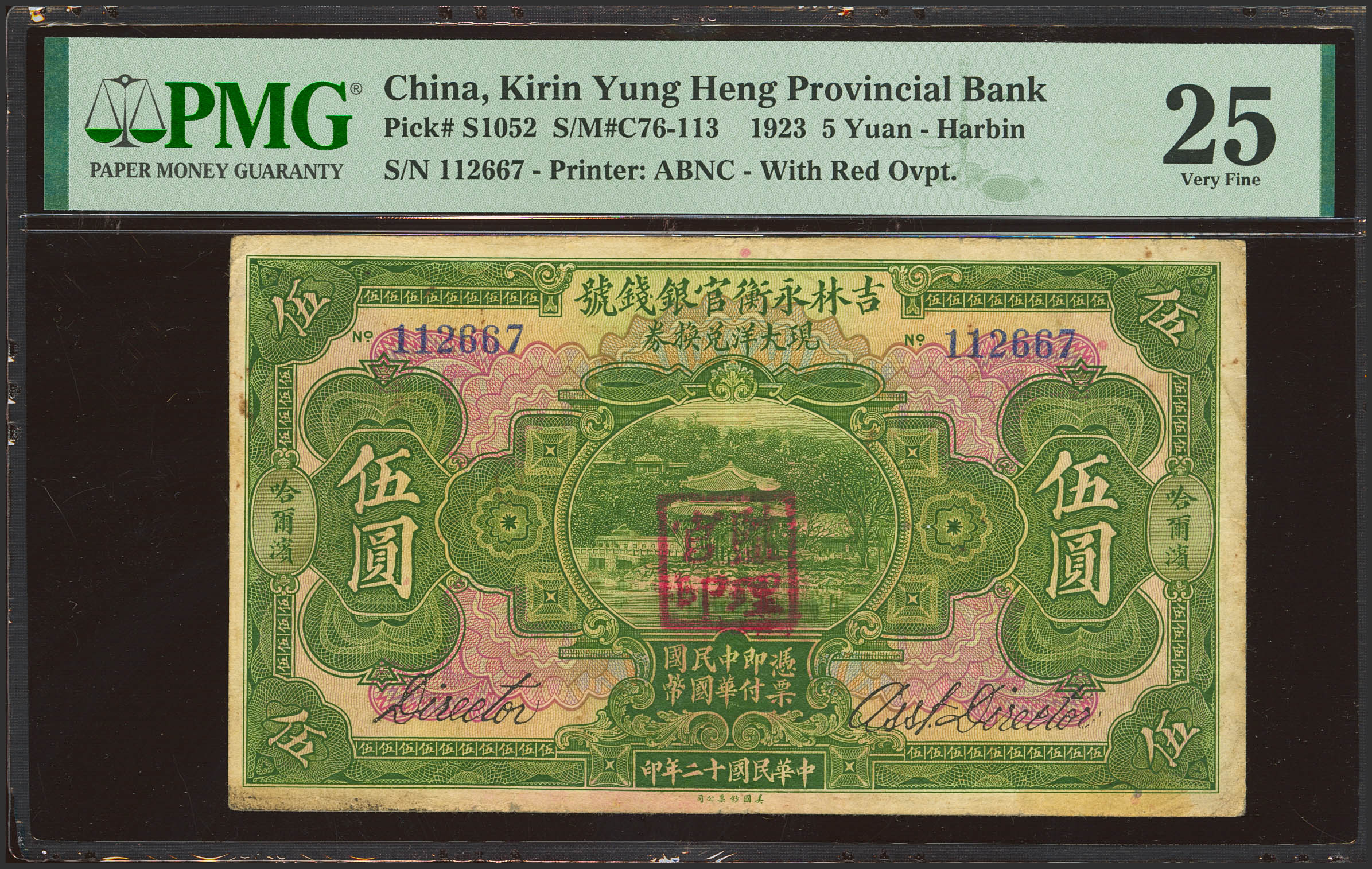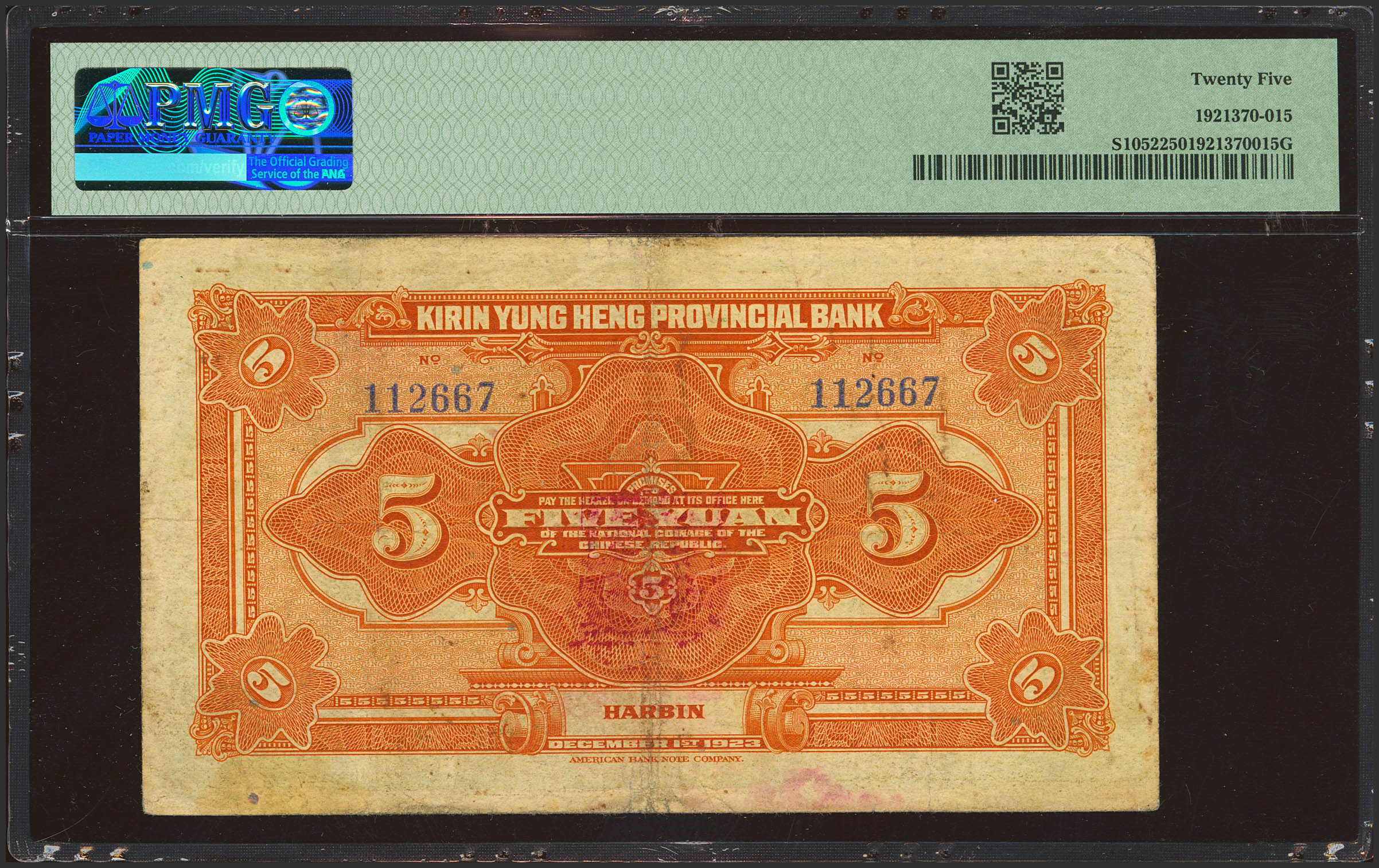 CHINA. 5 Yuan. 1 Dcember 1923. Kirin Yung Heng Provincial Bank. Harbin. (Pick: S1052, SM: C76-113). PMG25.
