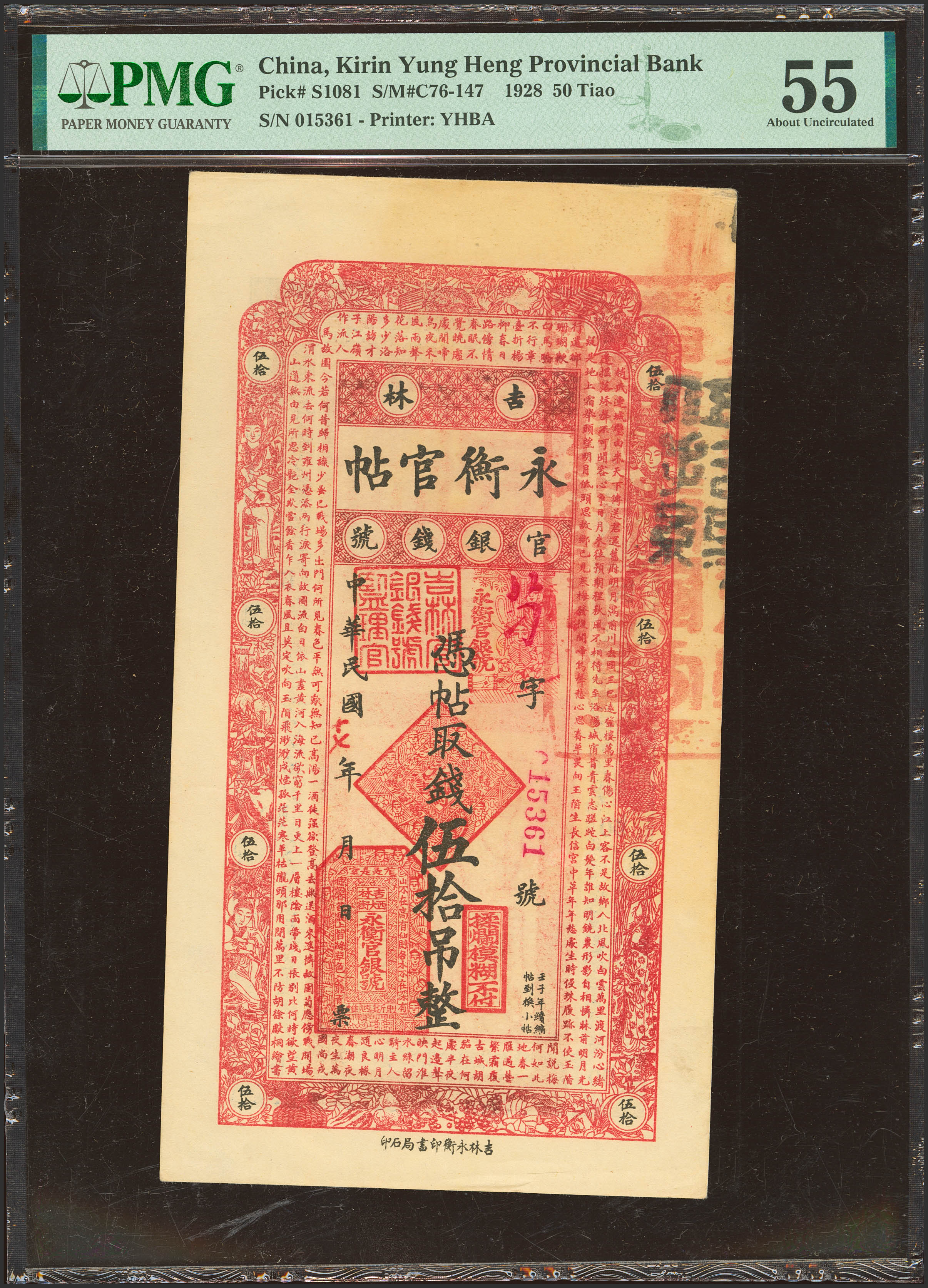 CHINA. 50 Tiao. 1928. Kirin Yung Heng Provincial Bank. (Pick: S1081, SM: C76-147). PMG55.
