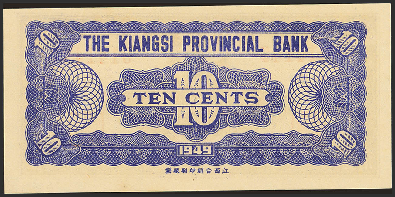 CHINA. 10 Cents. 1949. Kiangsi Provincial Bank. (Pick: S1089Ca). Almost Uncirculated.