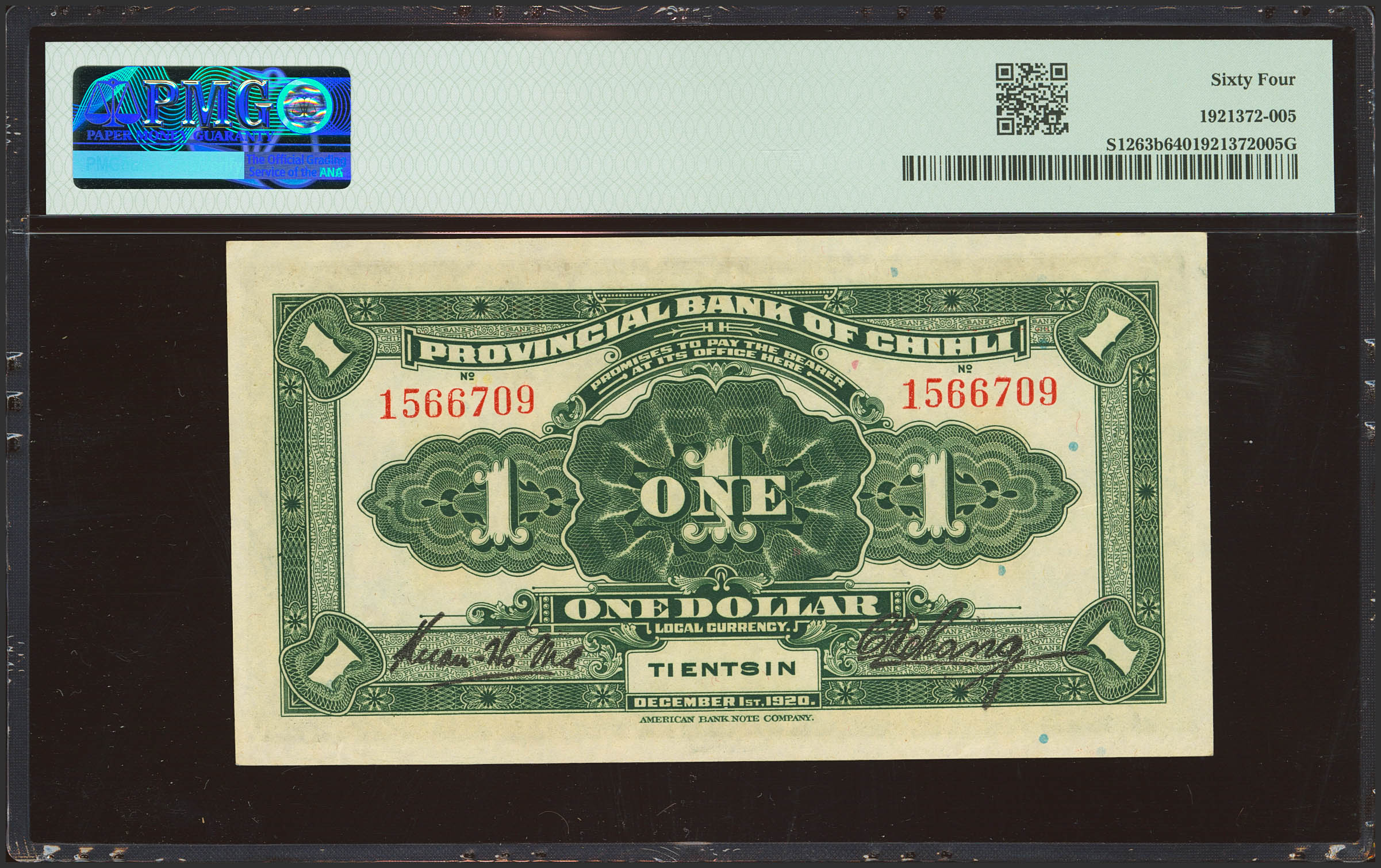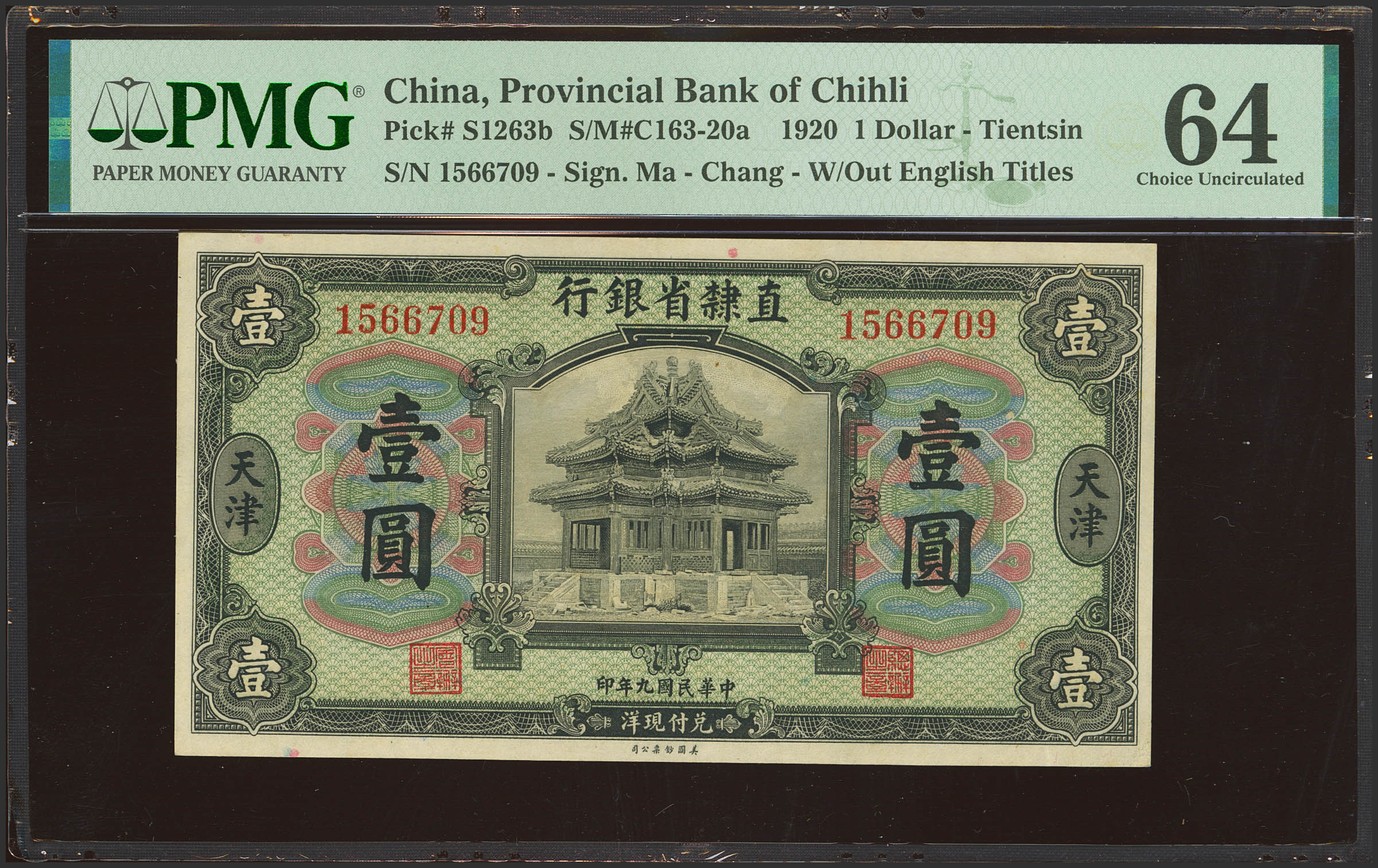 CHINA. 1 Dollar. 1 December 1920. Provincial Bank of Chihli. Tientsin. (Pick: S1263b, SM: C163-20a). PMG64.