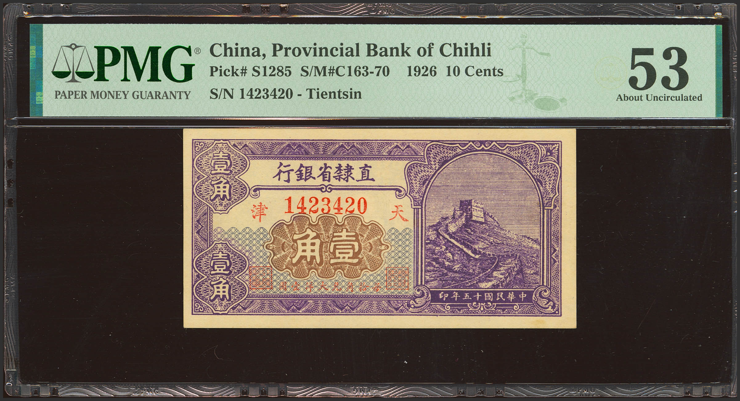 CHINA. 10 Cents. 1926. Provincial Bank of Chihli. (Pick: S1285, SM: C163-70). PMG53.