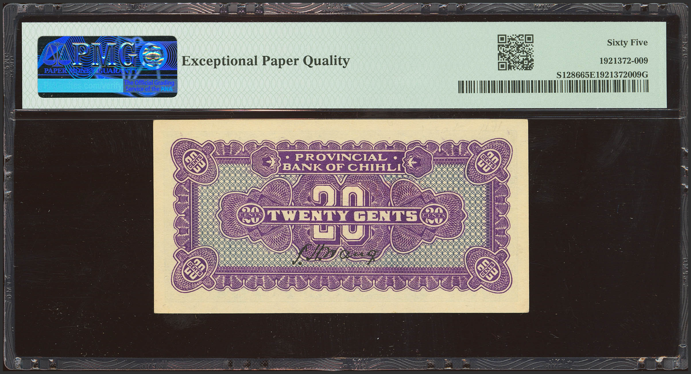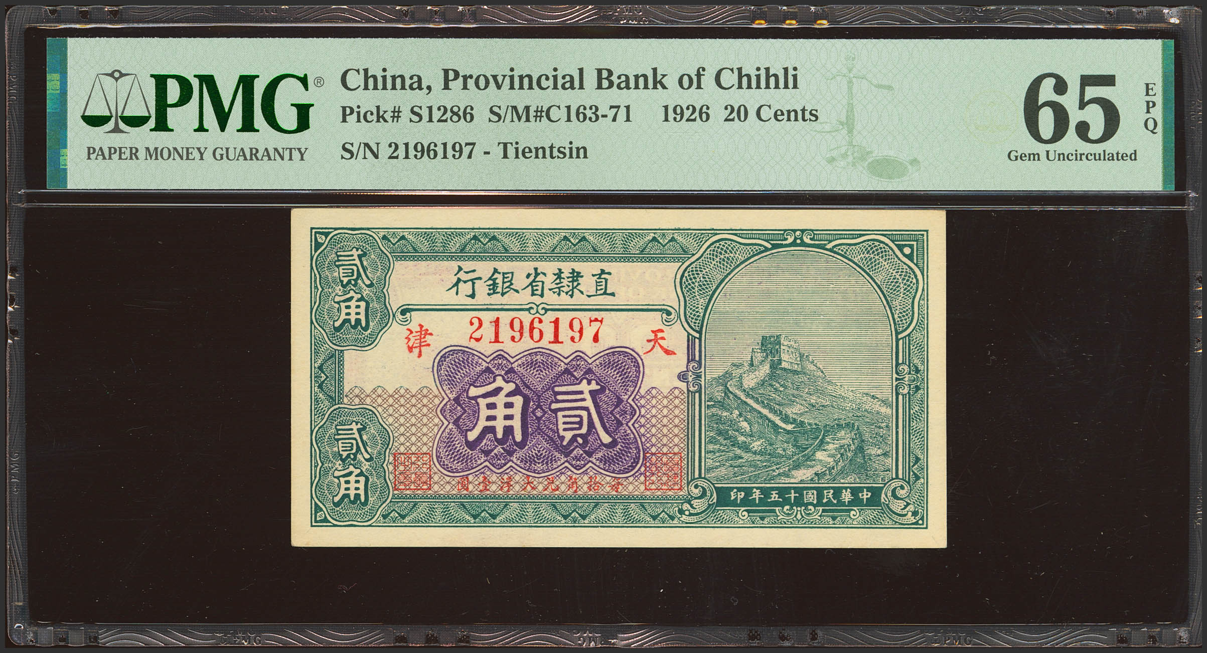 CHINA. 20 Cents. 1926. Provincial Bank of Chihli. (Pick: S1286, SM: C163-71). PMG65EPQ.