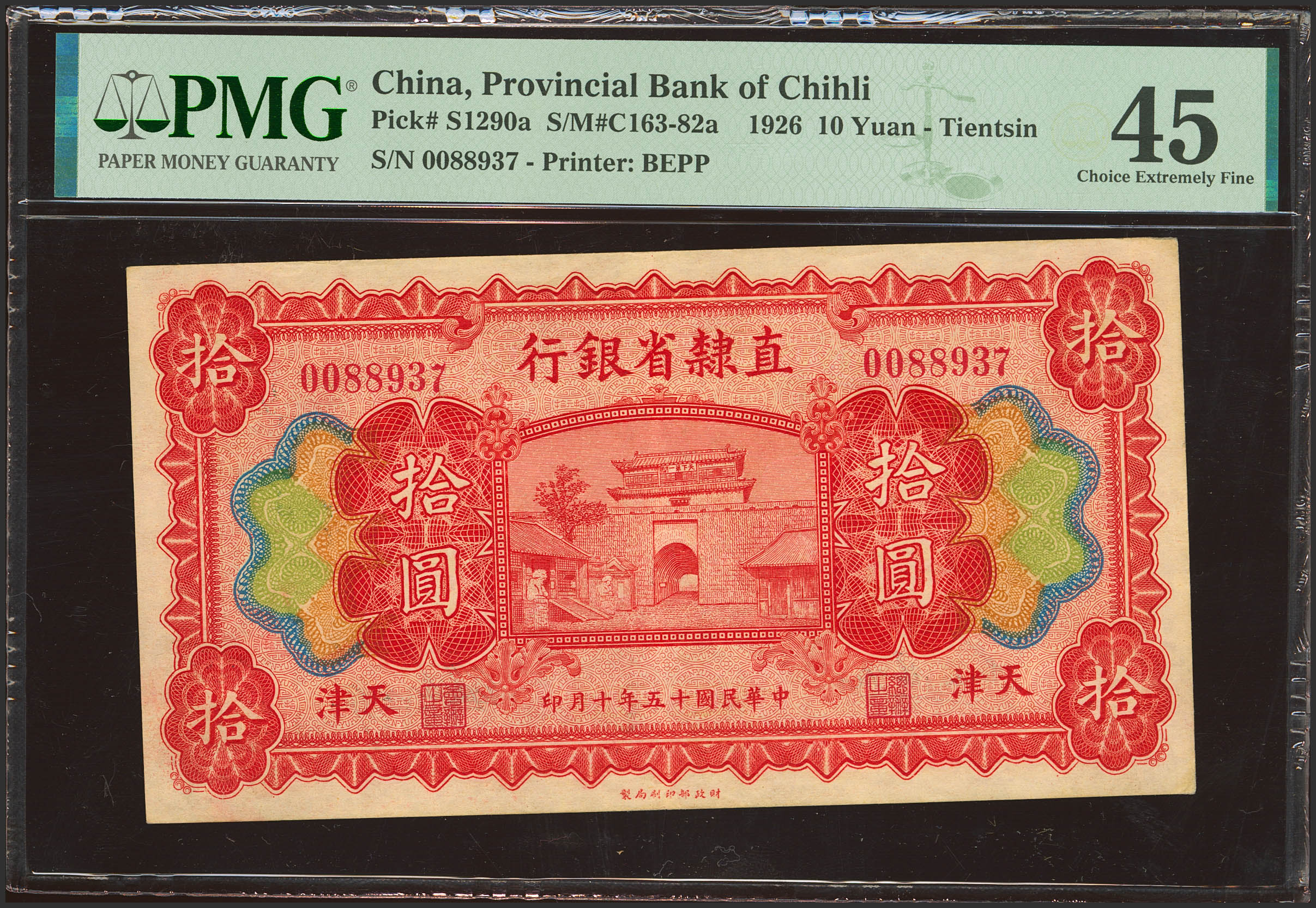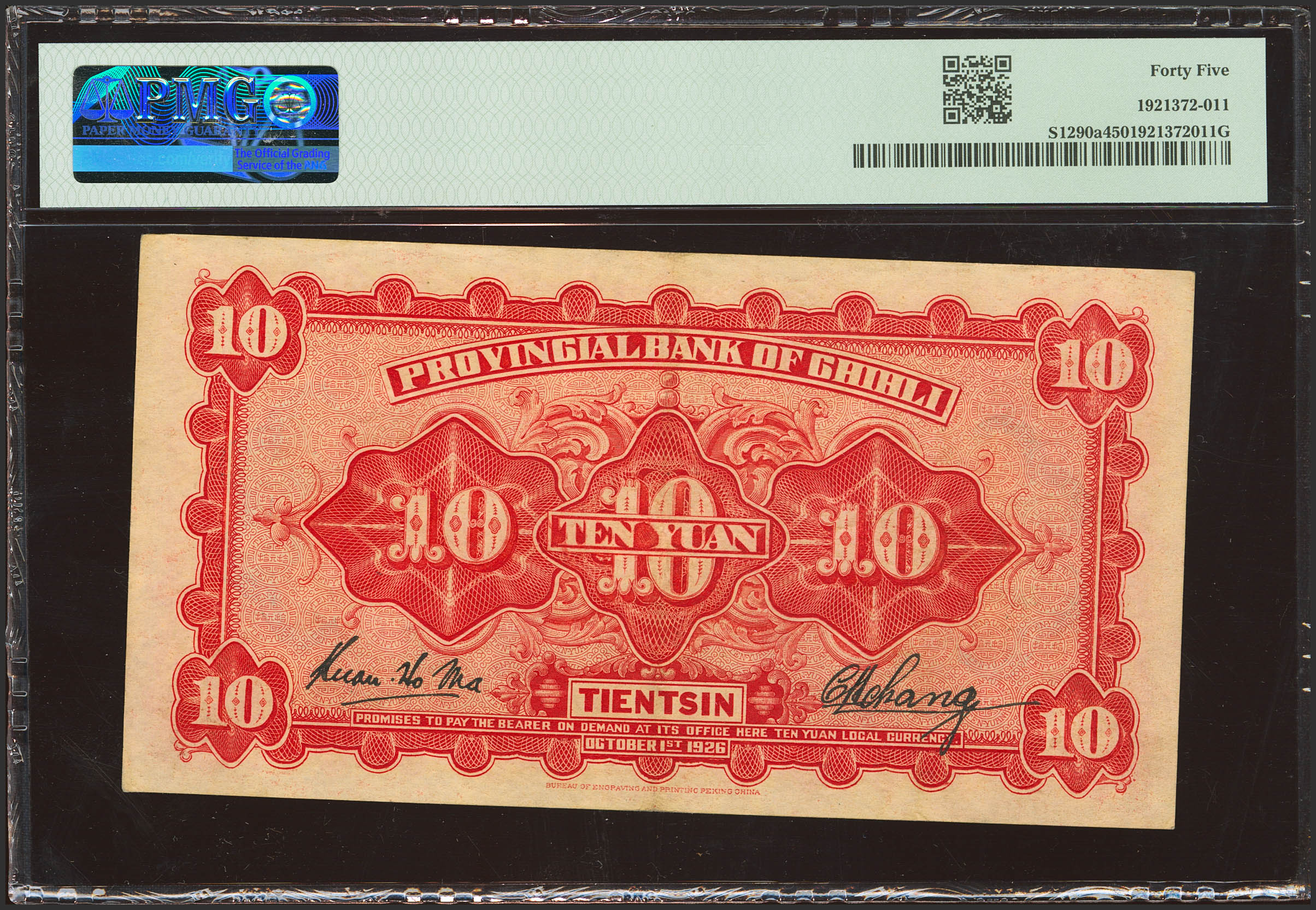 CHINA. 10 Yuan. 1 October 1926. Provincial Bank of Chihli. Tientsin. (Pick: S1290a, SM: C163-82a). PMG45.