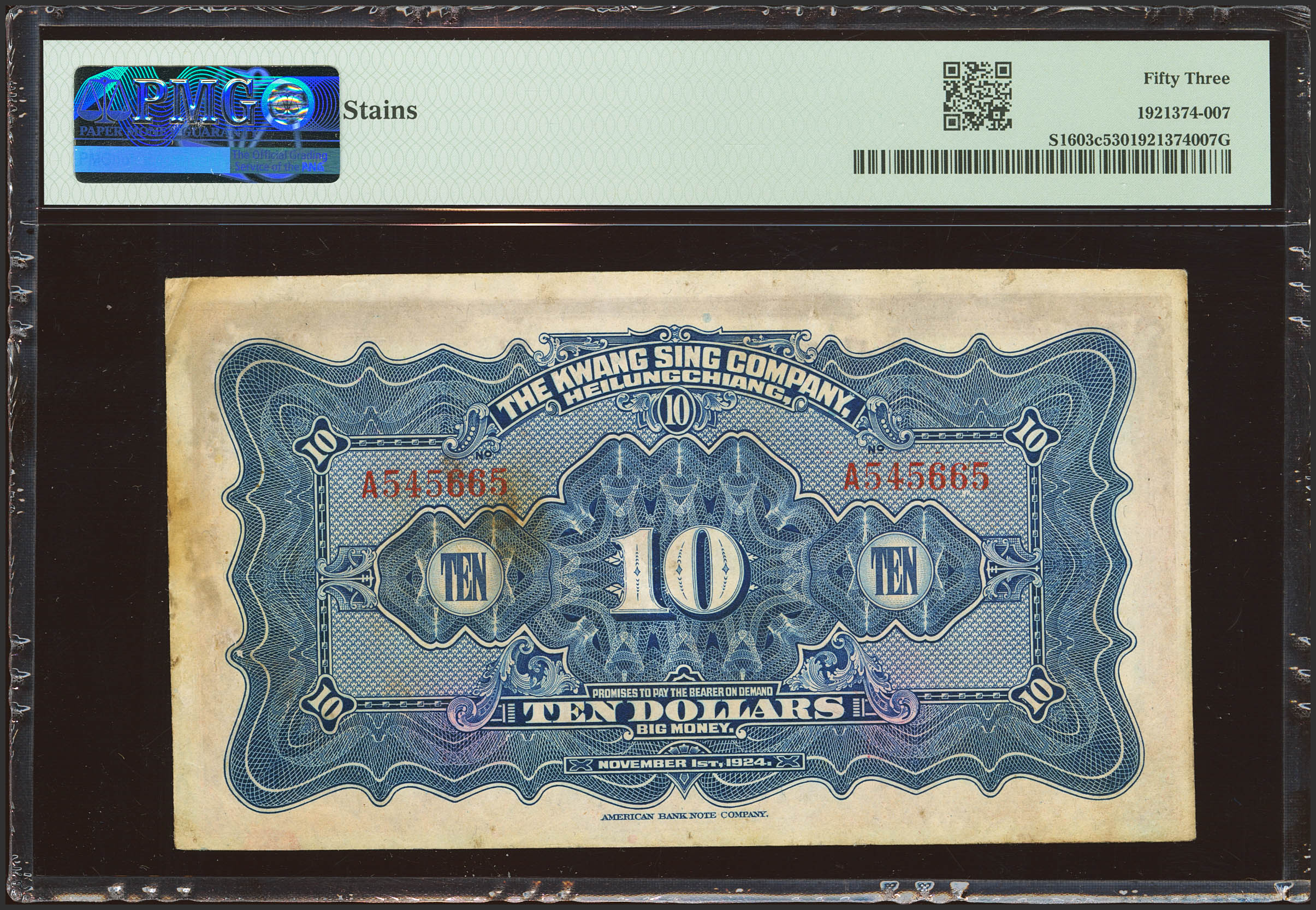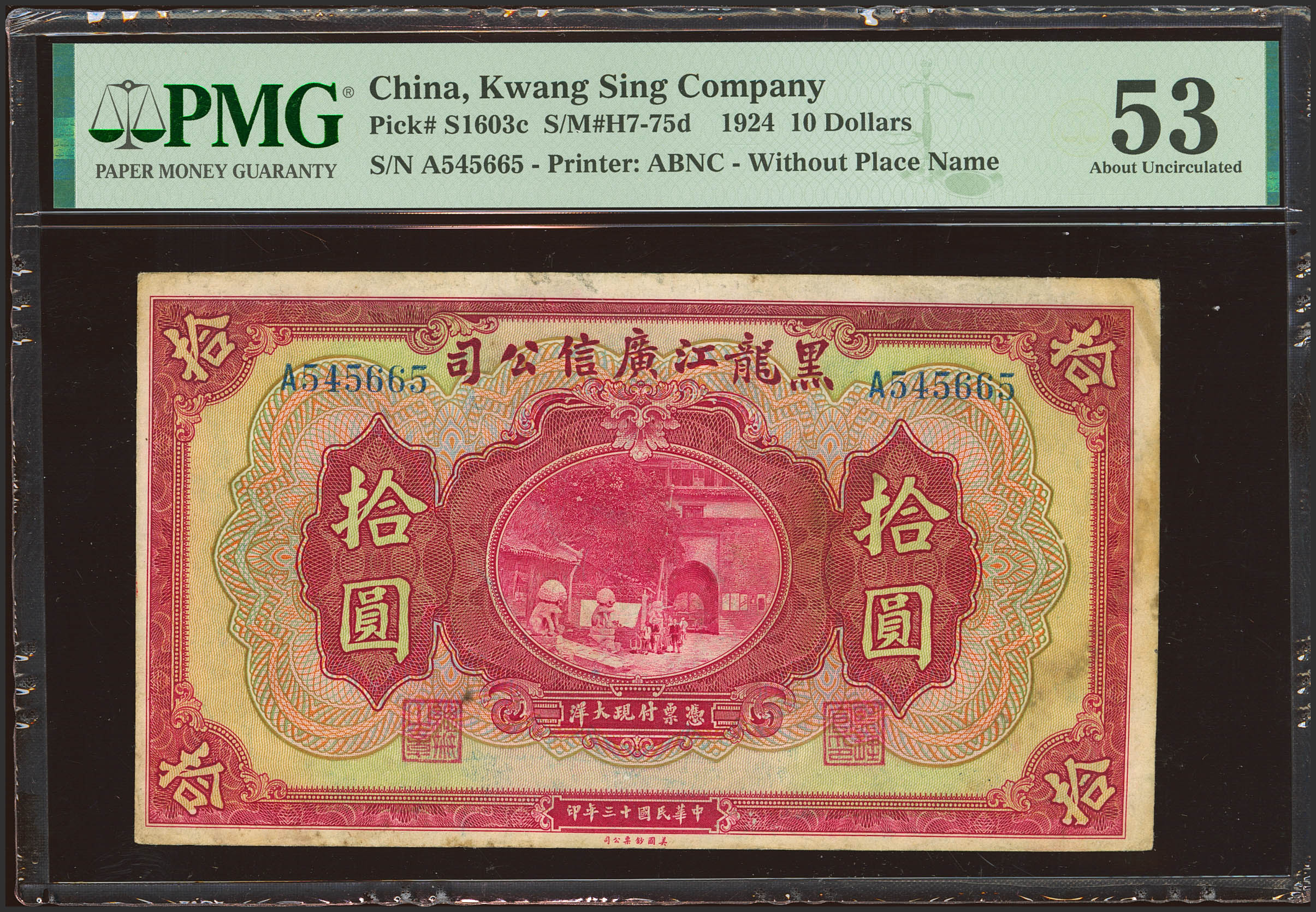 CHINA. 10 Dollars. 1 November 1924. Kuang Hsin Company. Heilungchiang. (Pick: S1603c, SM: H7-75d). PMG53 (stains).