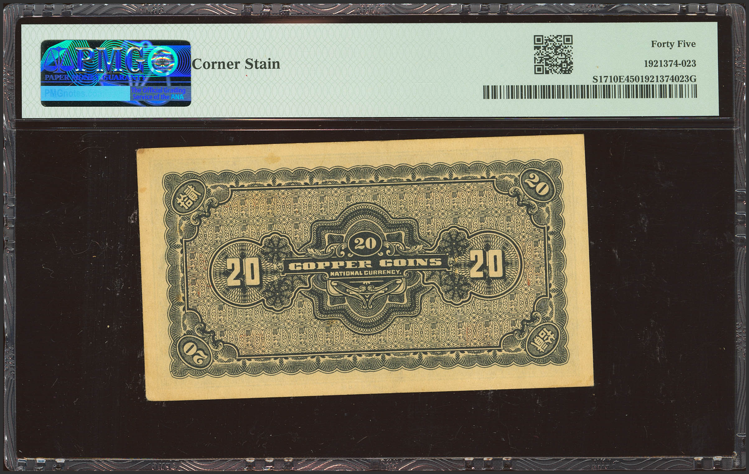 CHINA. 20 Coppers. 1936. Hopei Metropolitan Bank. (Pick: S1710E, SM: H63-21). PMG45 (corner stain).