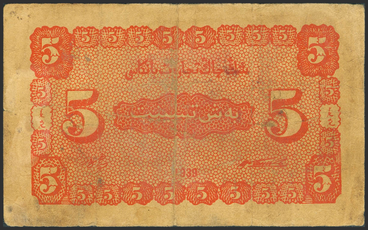 CHINA. 5 Fen. 1939. Sinkiang Commercial and Industrial Bank. (Pick: S1745a). Fine.