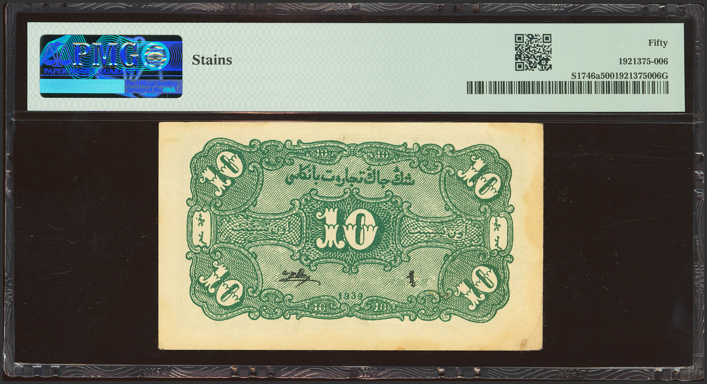 CHINA. 1 Chiao. 1939. Sinkiang Commercial and Industrial Bank. (Pick: S1746a, SM: CH123-4). PMG50 (stains).