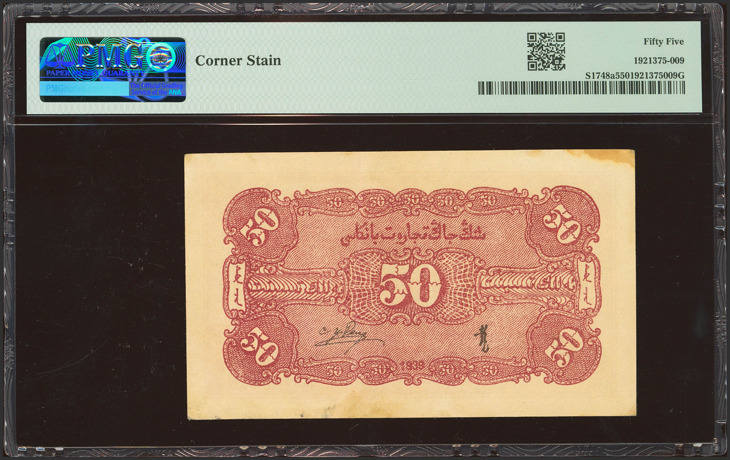 CHINA. 5 Chiao. 1939. Sinkiang Commercial and Industrial Bank. (Pick: S1748a, H123-6). PMG55 (corner stain).