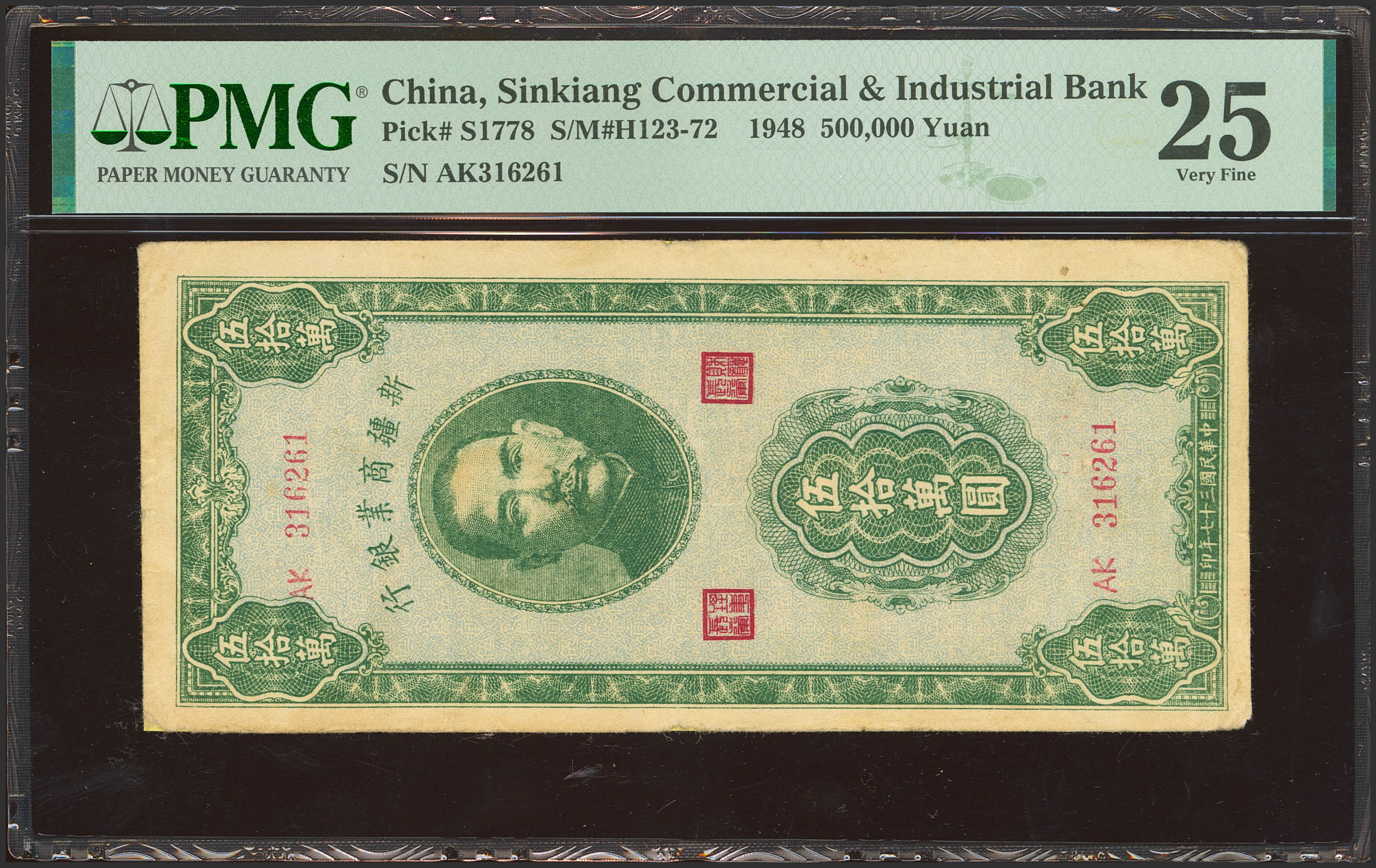 CHINA. 500000 Yuan. 1948. Sinkiang Commercial and Industrial Bank. (Pick: S1778, SM: H123-72). Adhesive paper applied. PMG25 (tape repairs).
