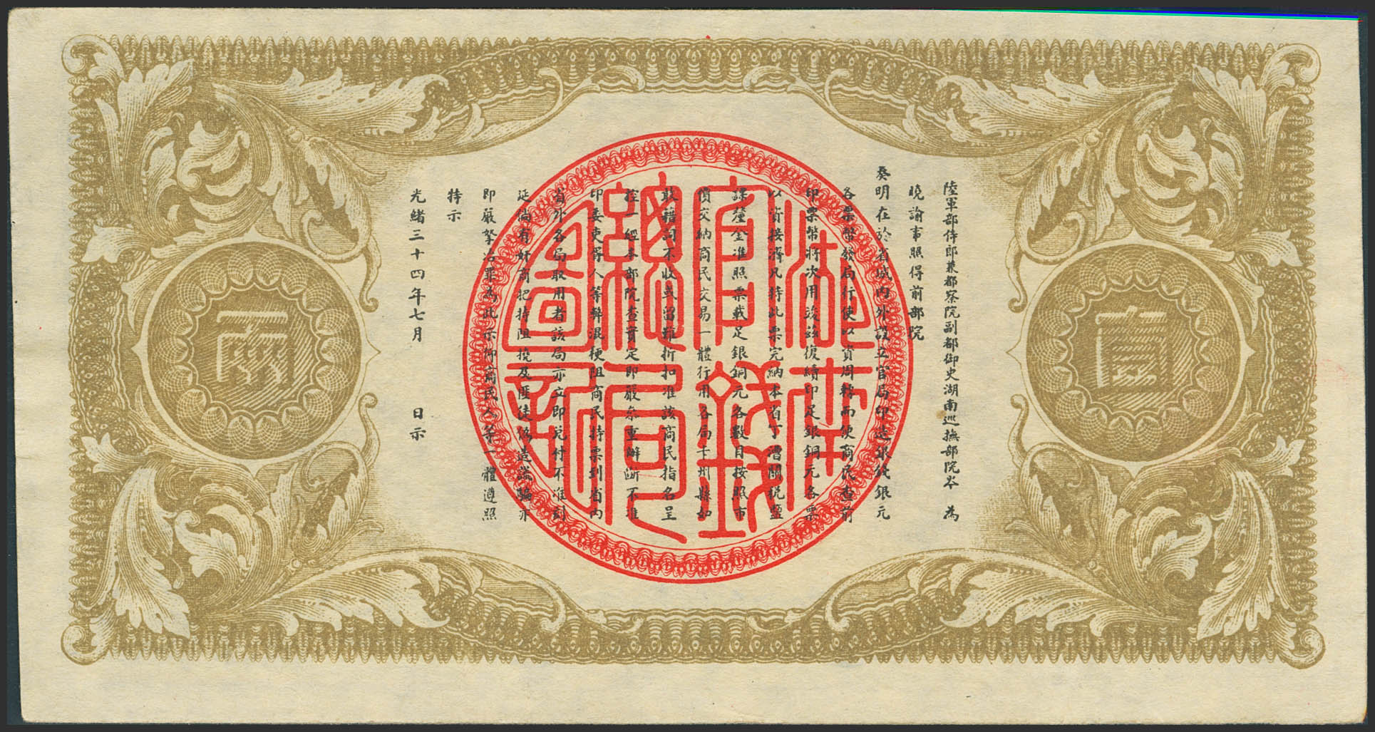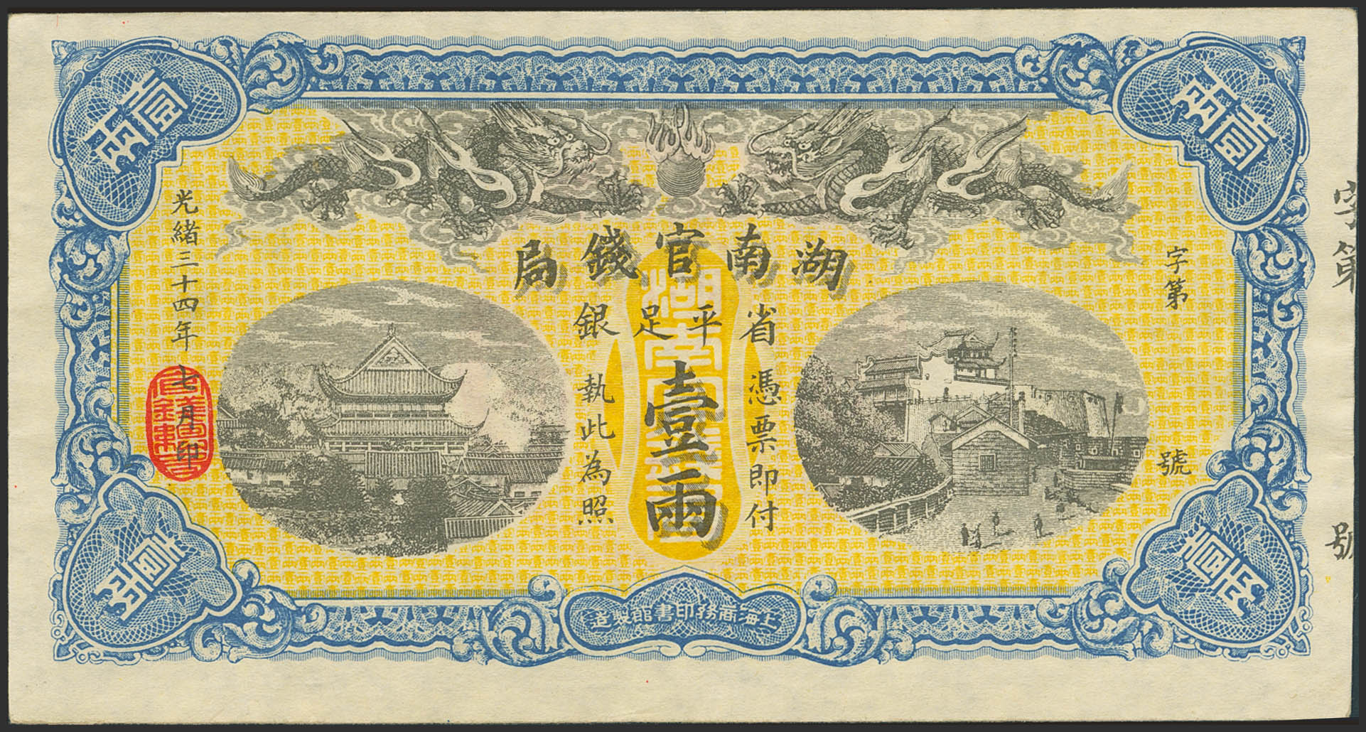 CHINA. 1 Tael. 1908. Hunan Government Bank. Counterfeit. (Pick: S1926x). Extremely Fine.
