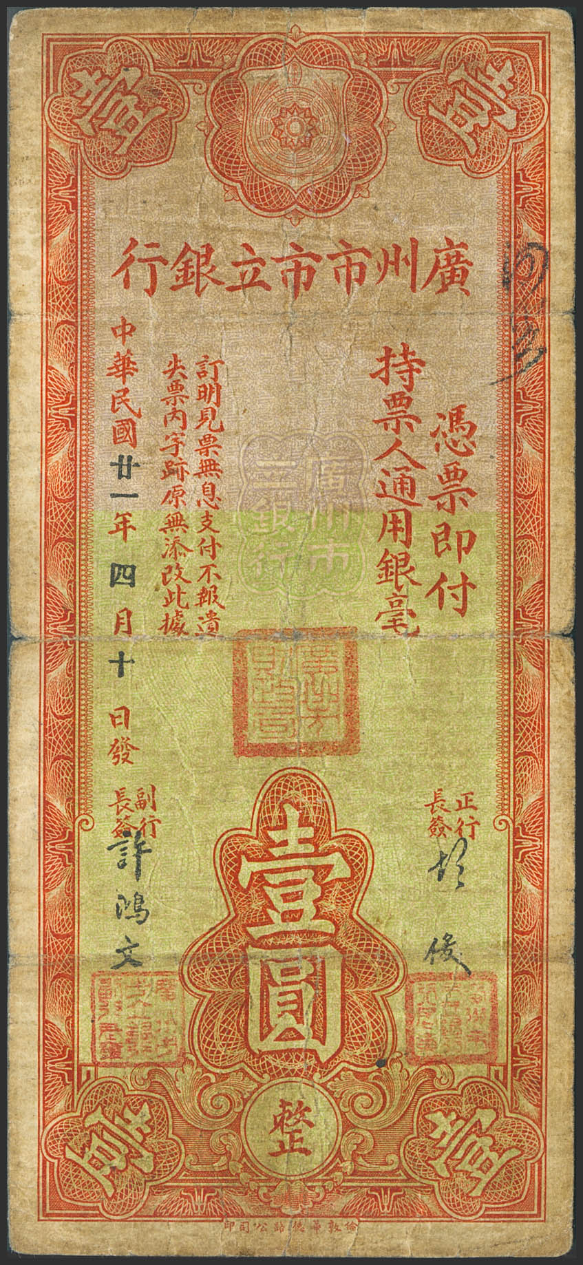 CHINA. 1 Dollar. 1932. Canton Municipal Bank. (Pick: S2256b). Fine.