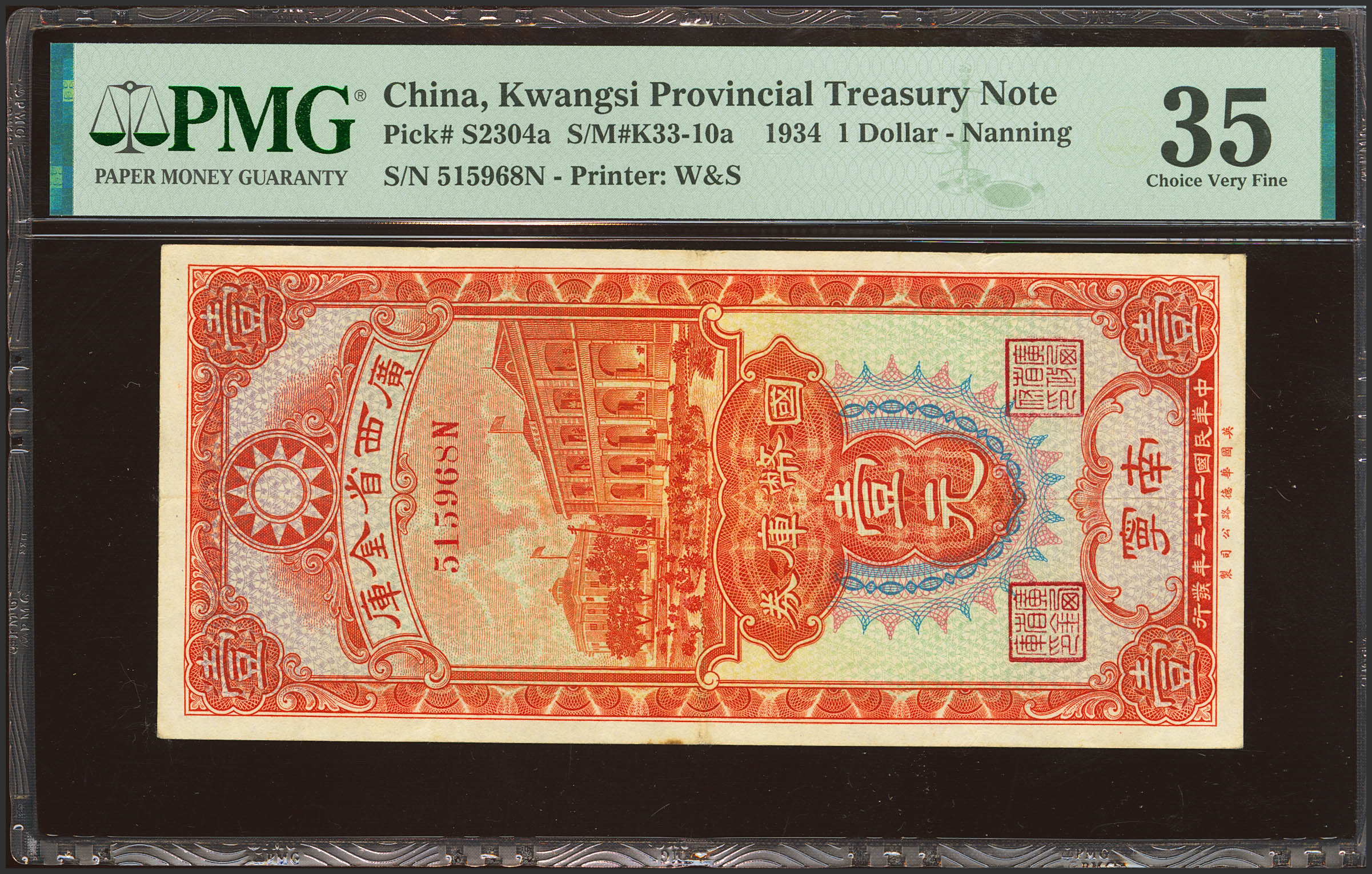 CHINA. 1 Yuan. 1934. Kwangsi Provincial Treasury. Nanning. (Pick: S2304a, SM: K33-10a). PMG35.