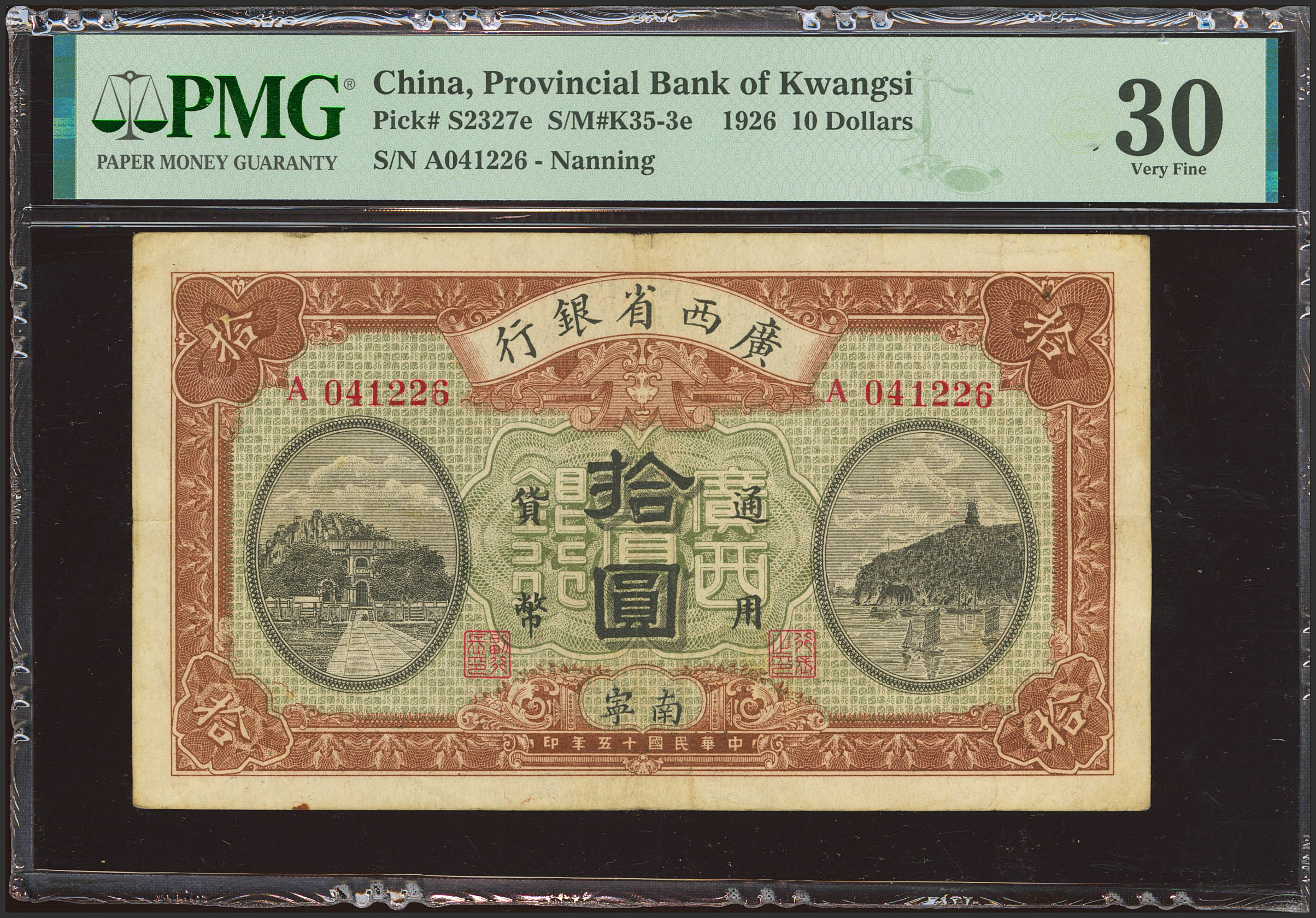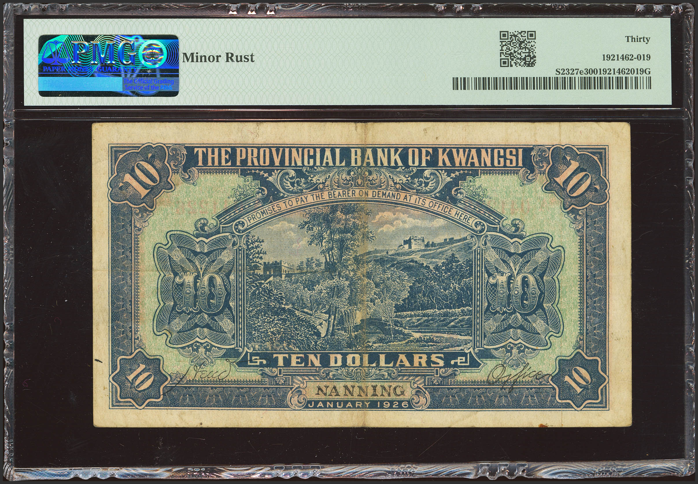 CHINA. 10 Dollars. January 1926. Provincial Bank of Kwangsi. Nanning. (Pick: S2327e, SM: S2327e). PMG30 (minor rust).
