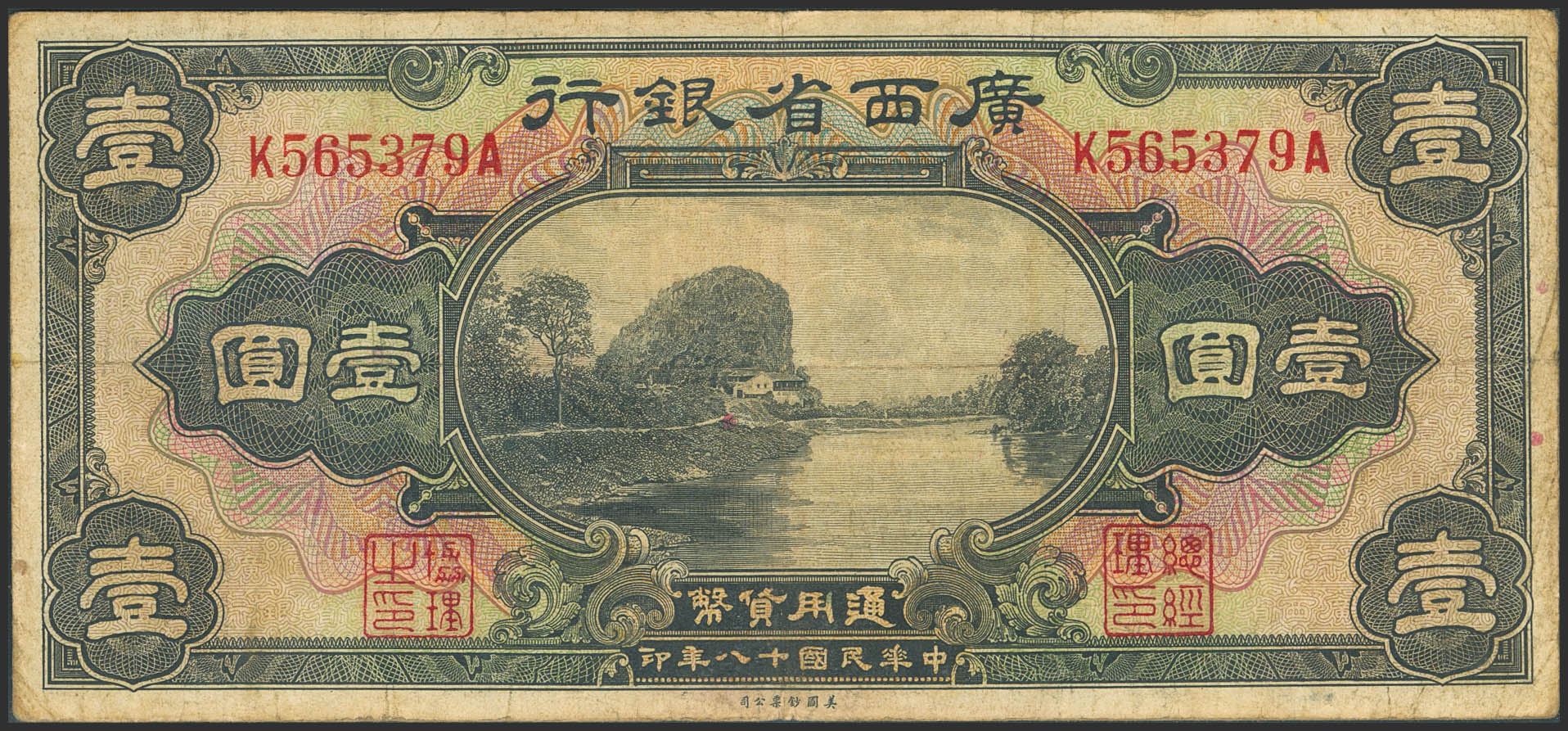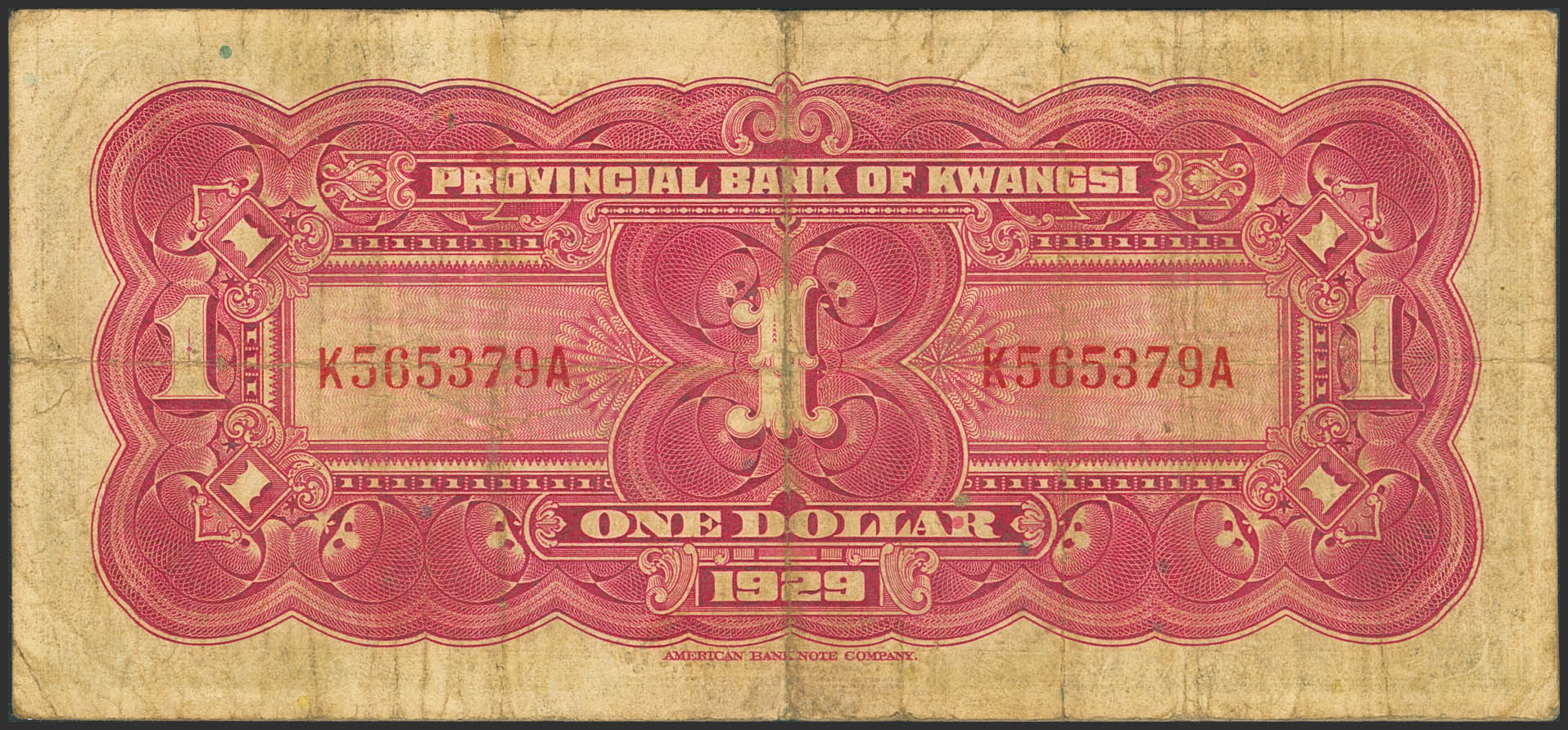 CHINA. 1 Dollar. 1929. Provincial Bank of Kwangsi. Remainder. (Pick: S2339r). Very Fine.