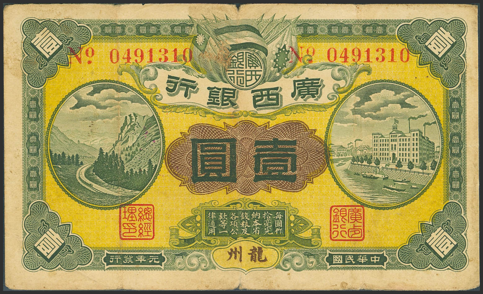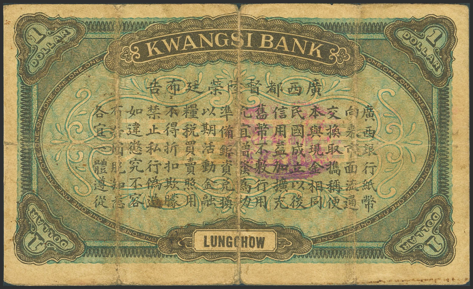 CHINA. 1 Dollar. 1912. Kwangsi Bank. Lungchow. (Pick: S2351c). Very Fine.
