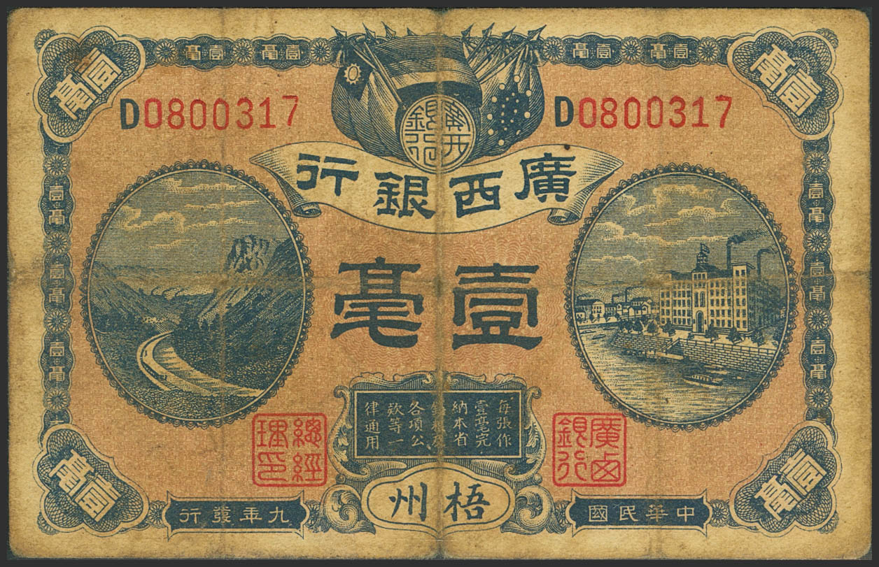 CHINA. 10 Cents. 1920. Kwangsi Bank. Wuchow. (Pick: S2357). More than Fine.