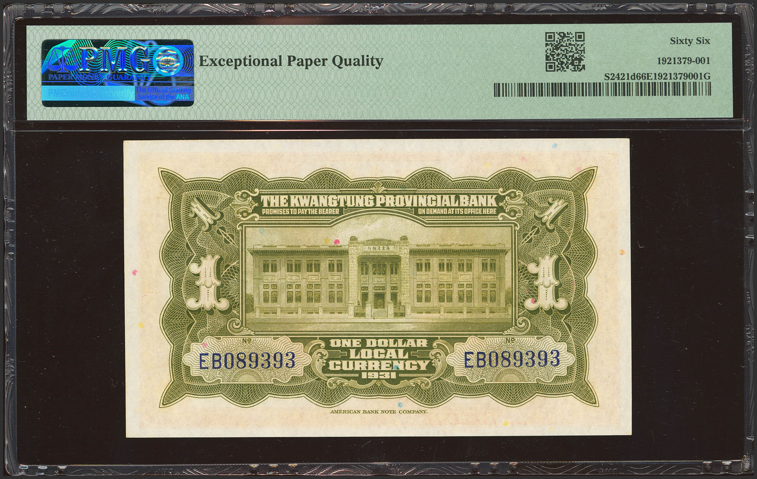 CHINA. 1 Dollar. 1931. Kwangtung Provincial Bank. (Pick: S2421d, SM: K56-1d). PMG66EPQ.