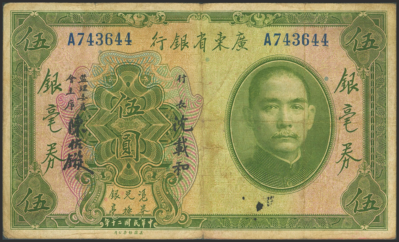 CHINA. 5 Dollars. 1931. Kwangtung Provincial Bank. (Pick: S2422b). Very Fine.