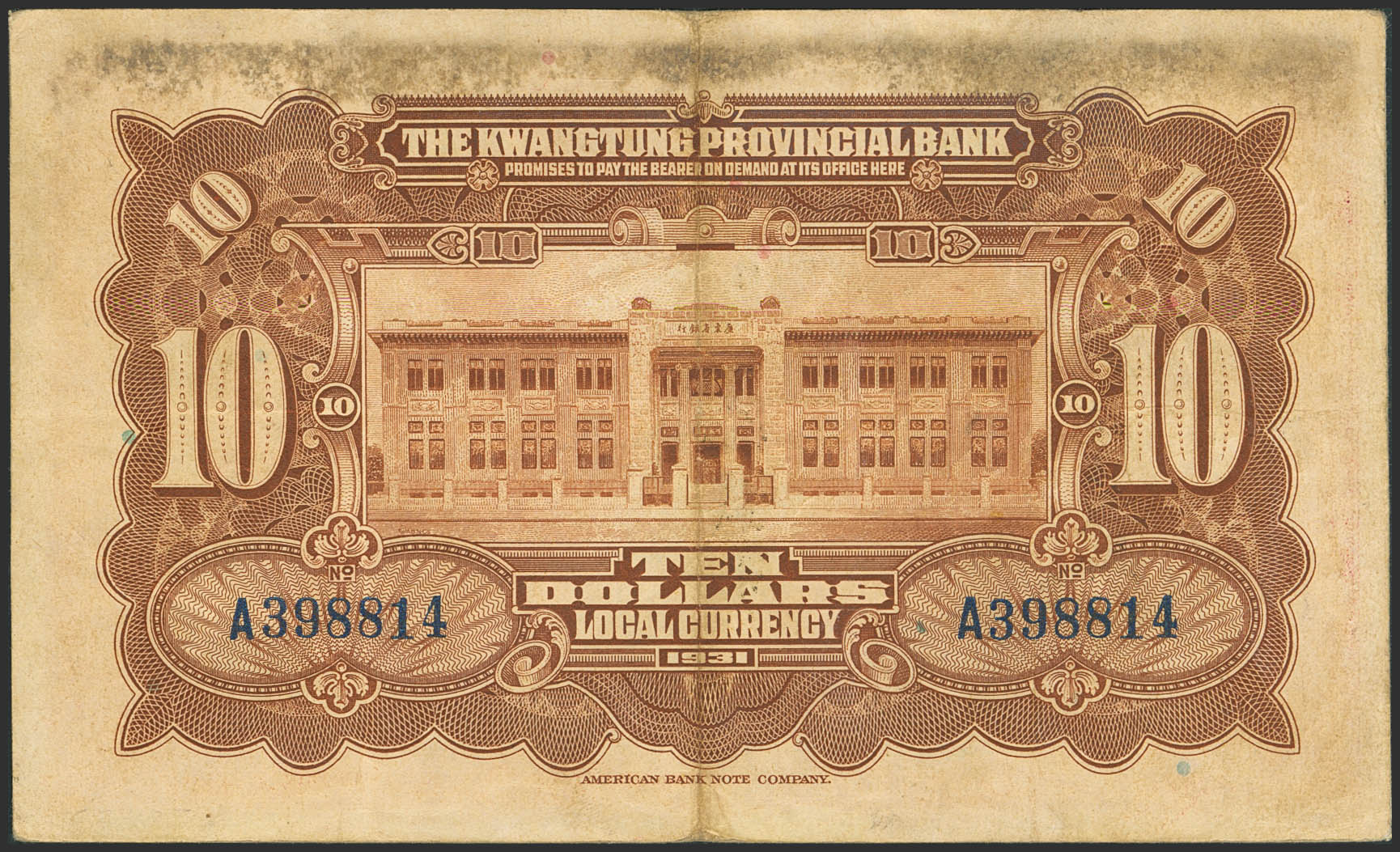CHINA. 10 Dollars. 1931. Kwangtung Provincial Bank. (Pick: S2423a). More than Very Fine.