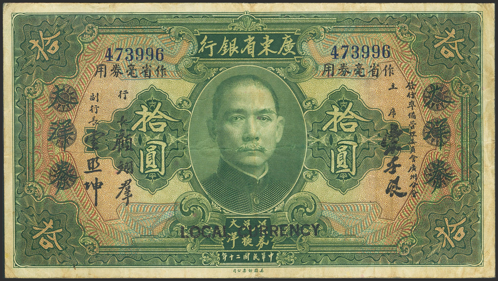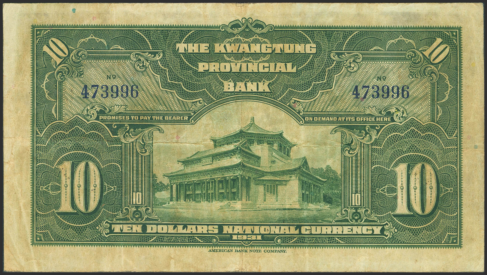 CHINA. 10 Dollars. 1931. Kwangtung Provincial Bank. (Pick: S2425b). Very Fine.