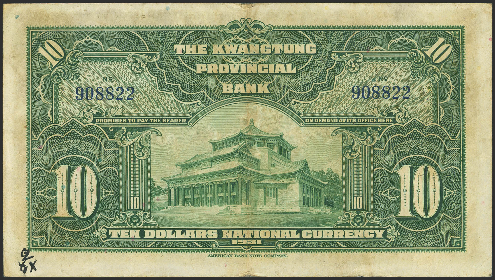 CHINA. 10 Dollars. 1931. Kwangtung Provincial Bank. (Pick: S2425b). Extremely Fine.