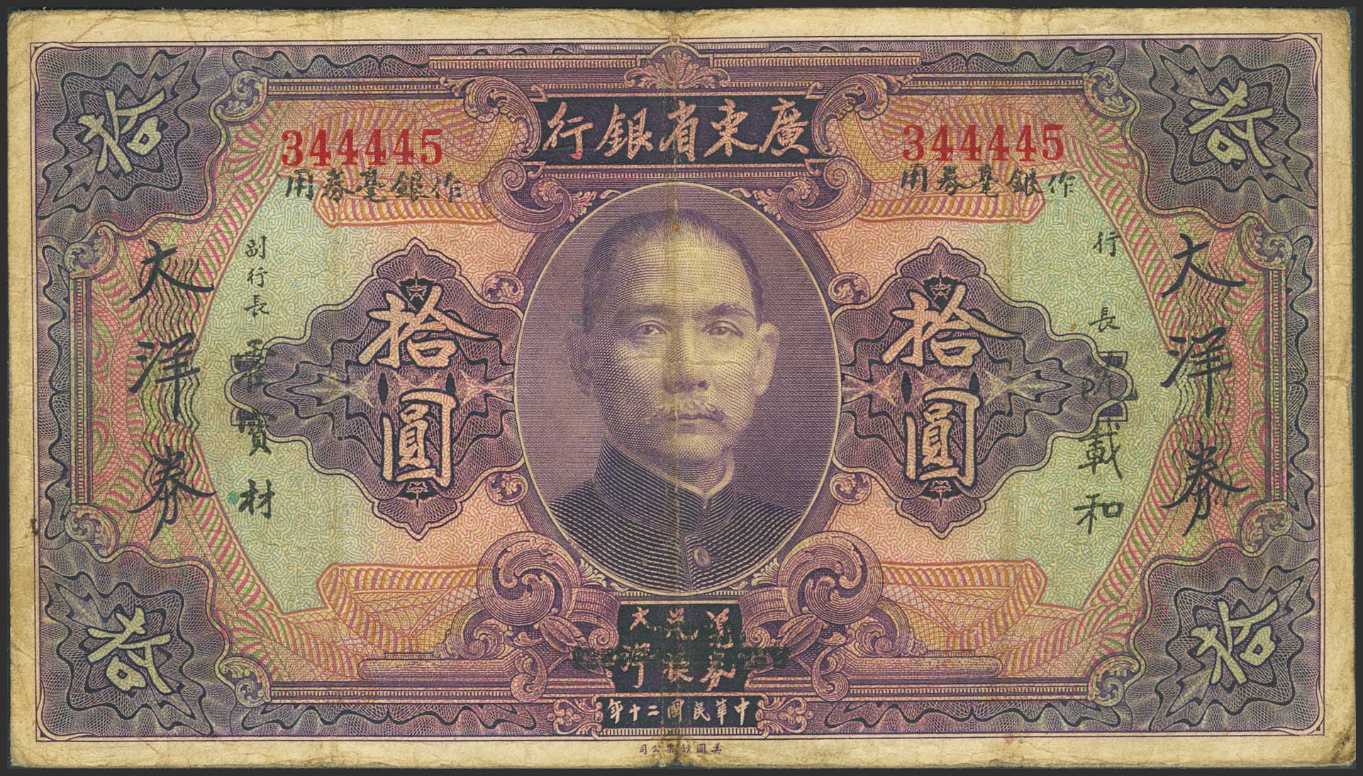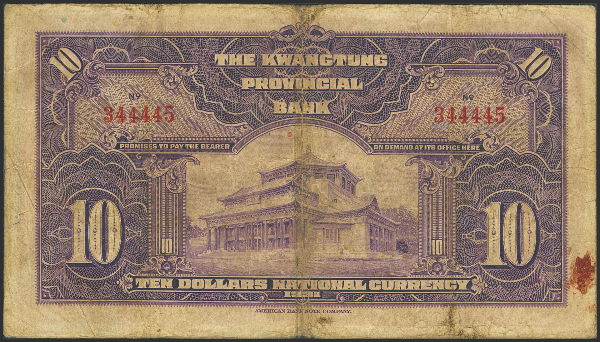 CHINA. 10 Dollars. 1931. Kwangtung Provincial Bank. (Pick: S2428). More than Fine.