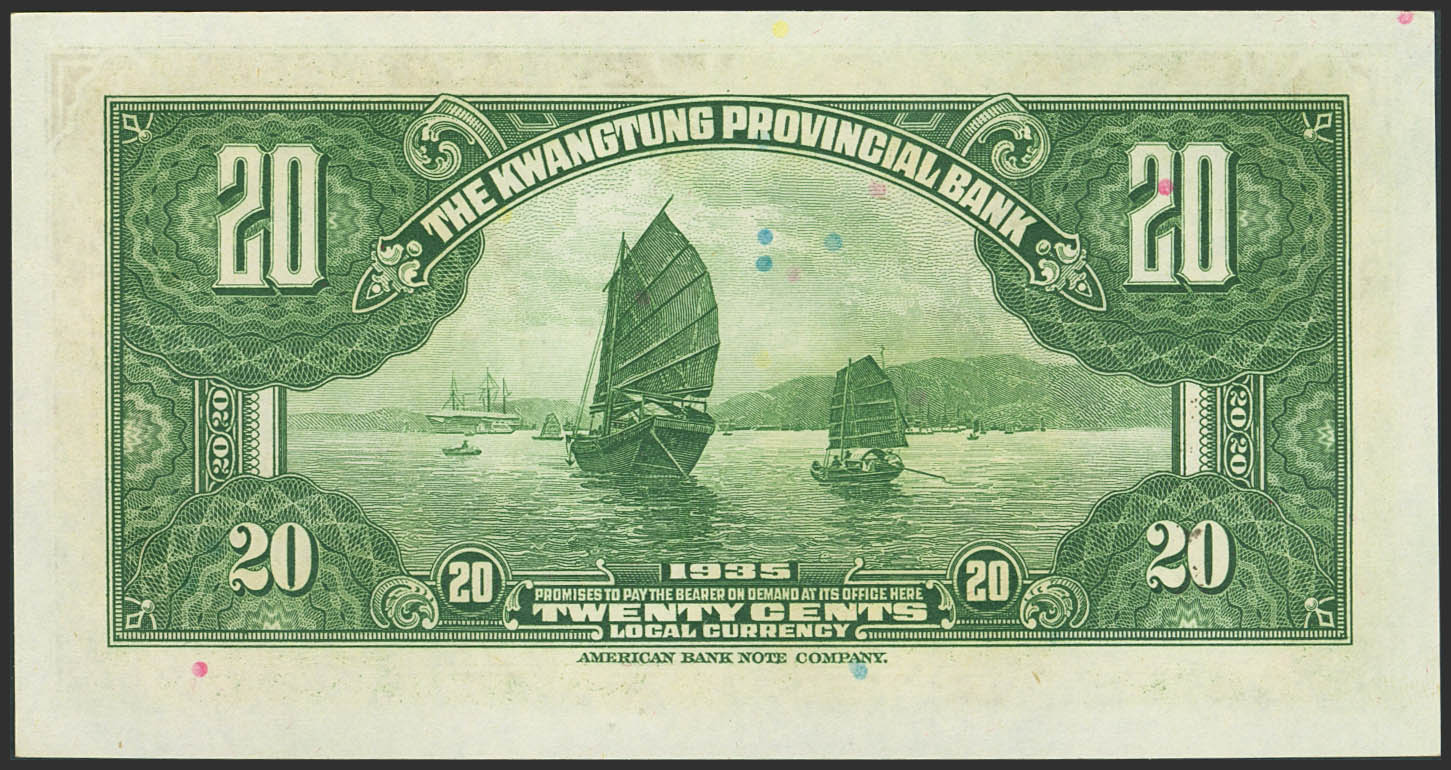 CHINA. 20 Cents. 1935. Kwangtung Provincial Bank. (Pick: S2437a). Less than Uncirculated.