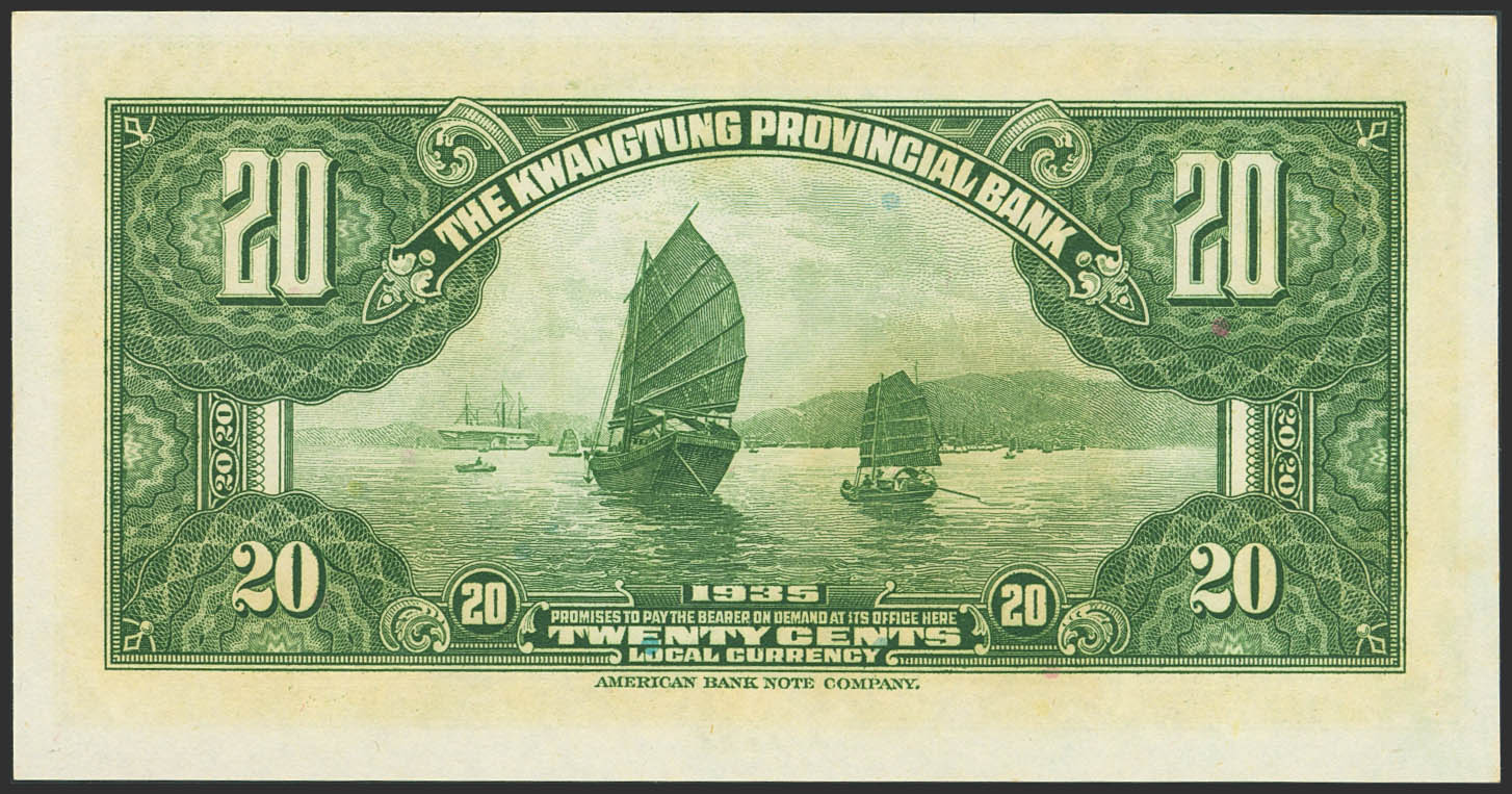CHINA. 20 Cents. 1935. Kwangtung Provincial Bank. (Pick: S2437b). Uncirculated.