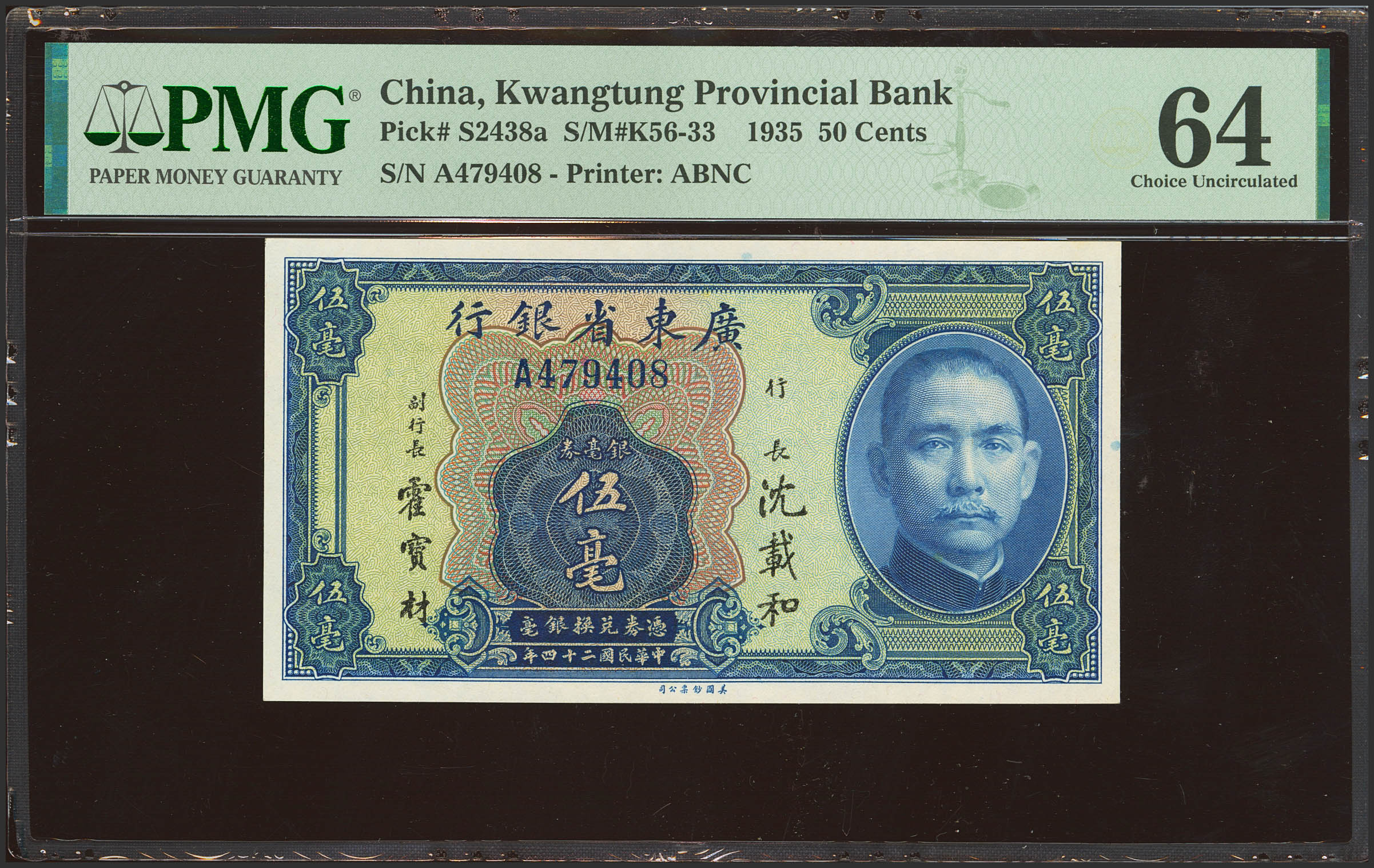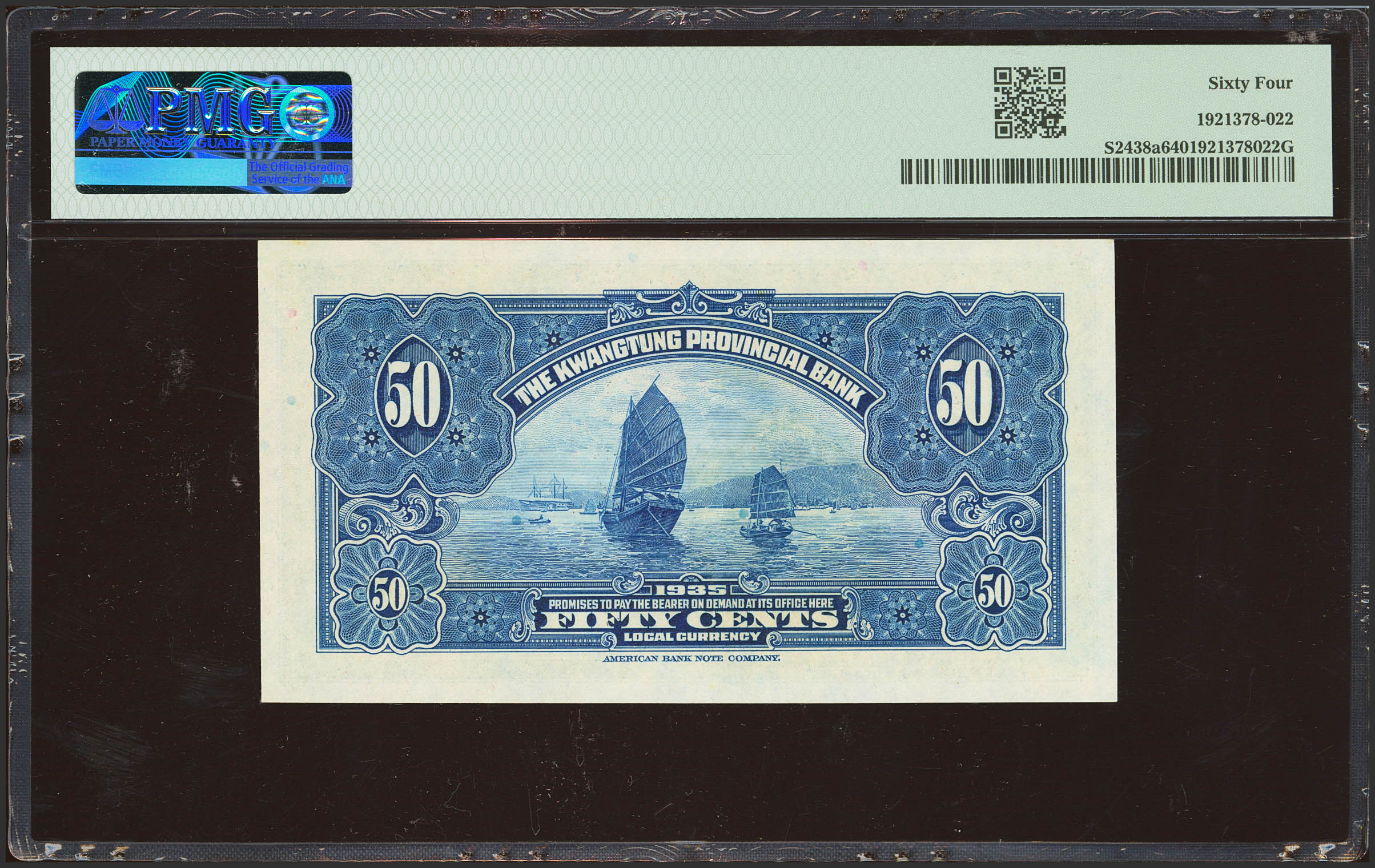 CHINA. 50 Cents. 1935. Kwangtung Provincial Bank. (Pick: S2438a, SM: K56-33). PMG64.