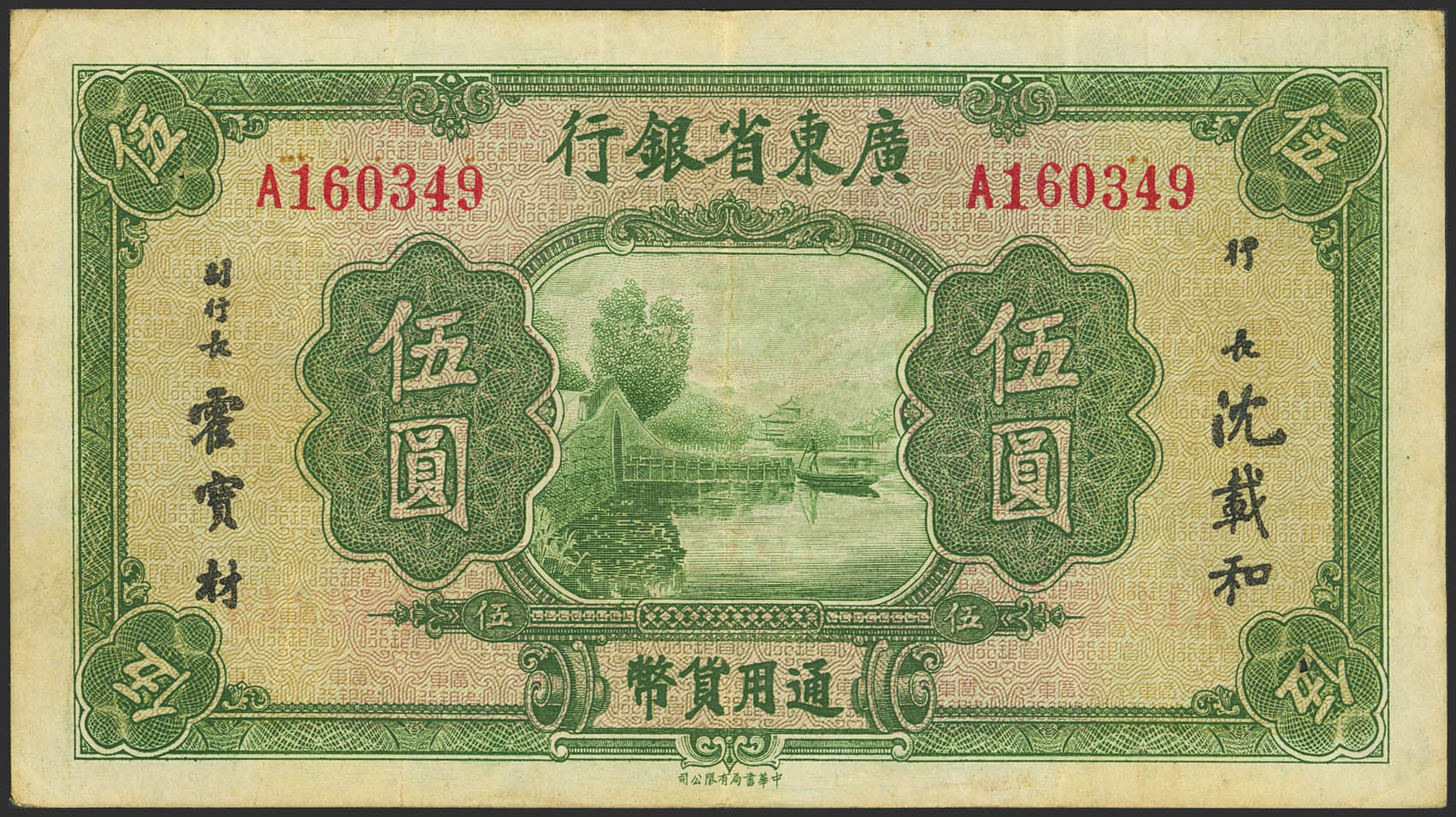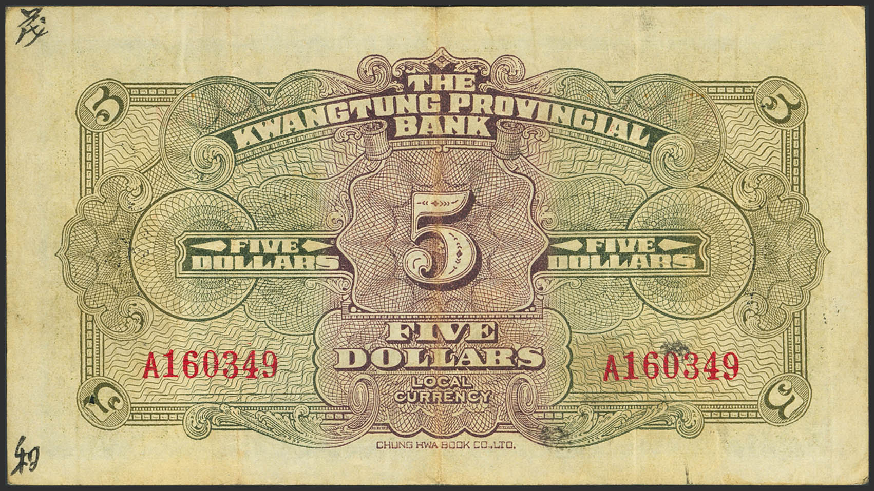 CHINA. 5 Dollars. (1936ca). Kwangtung Provincial Bank. (Pick: S2443). Extremely Fine.