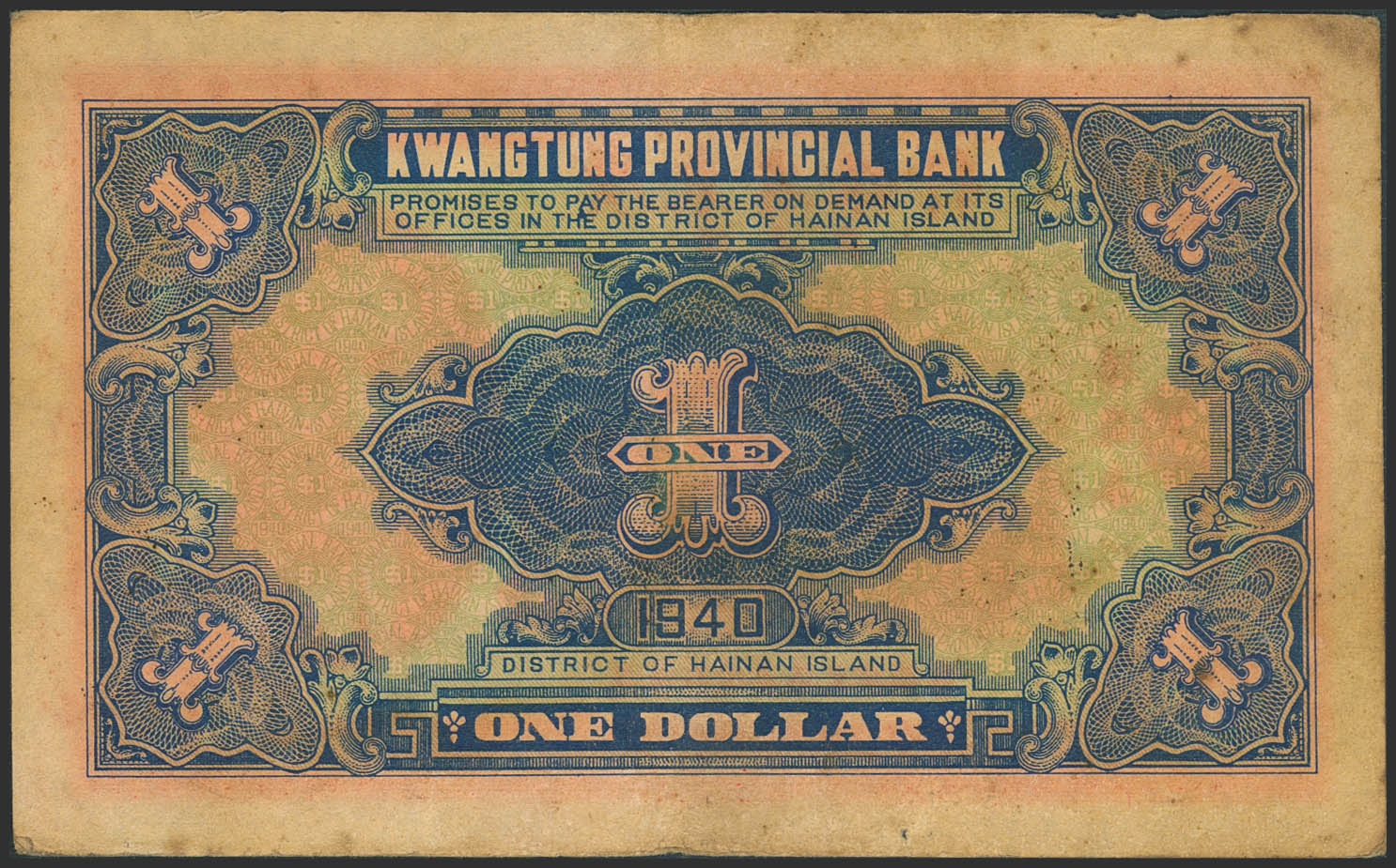 CHINA. 1 Dollar. 1940. Kwangtung Provincial Bank. District of Hainan Island. (Pick: S2449a). Extremely Fine.