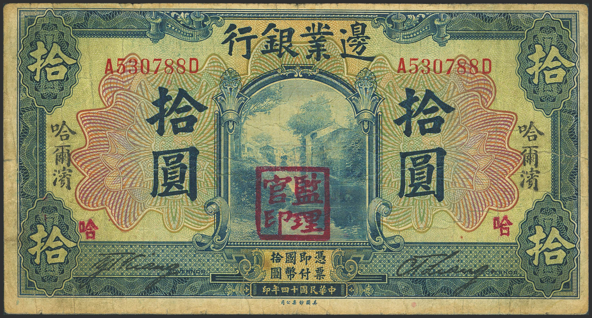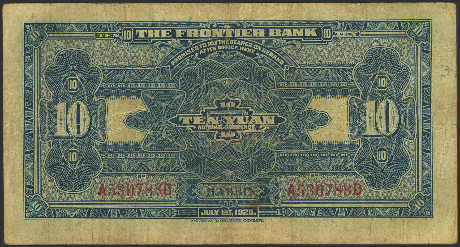 CHINA. 10 Yuan. 1 July 1925. Frontier Bank. Harbin. (Pick: S2572b). More than Fine.