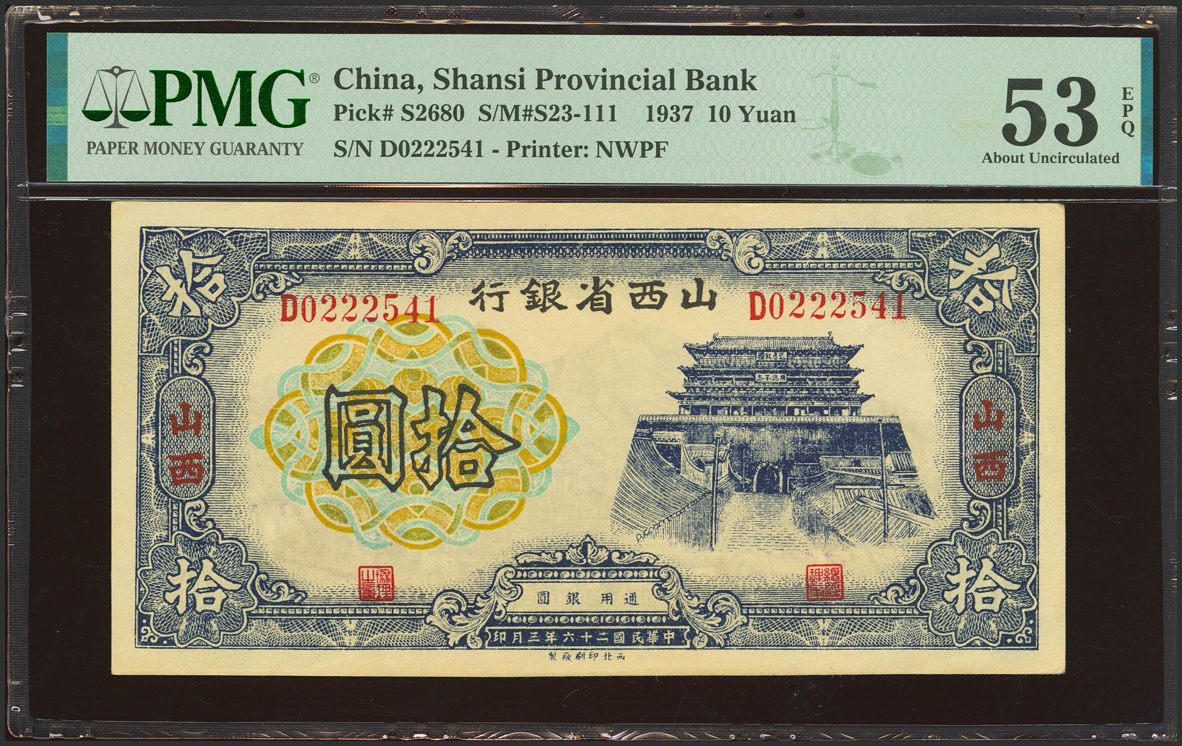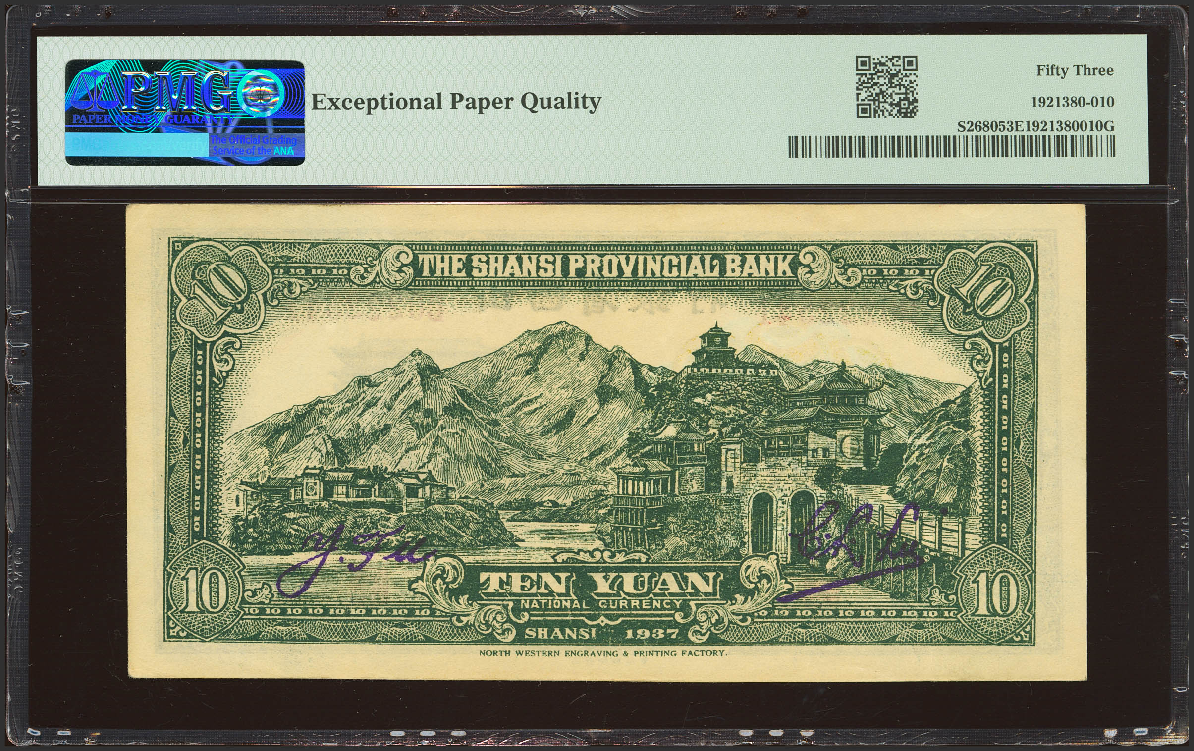 CHINA. 10 Yuan. 1937. Shansi Provincial Bank. (Pick: S2680, SM: S23-111). PMG53EPQ.