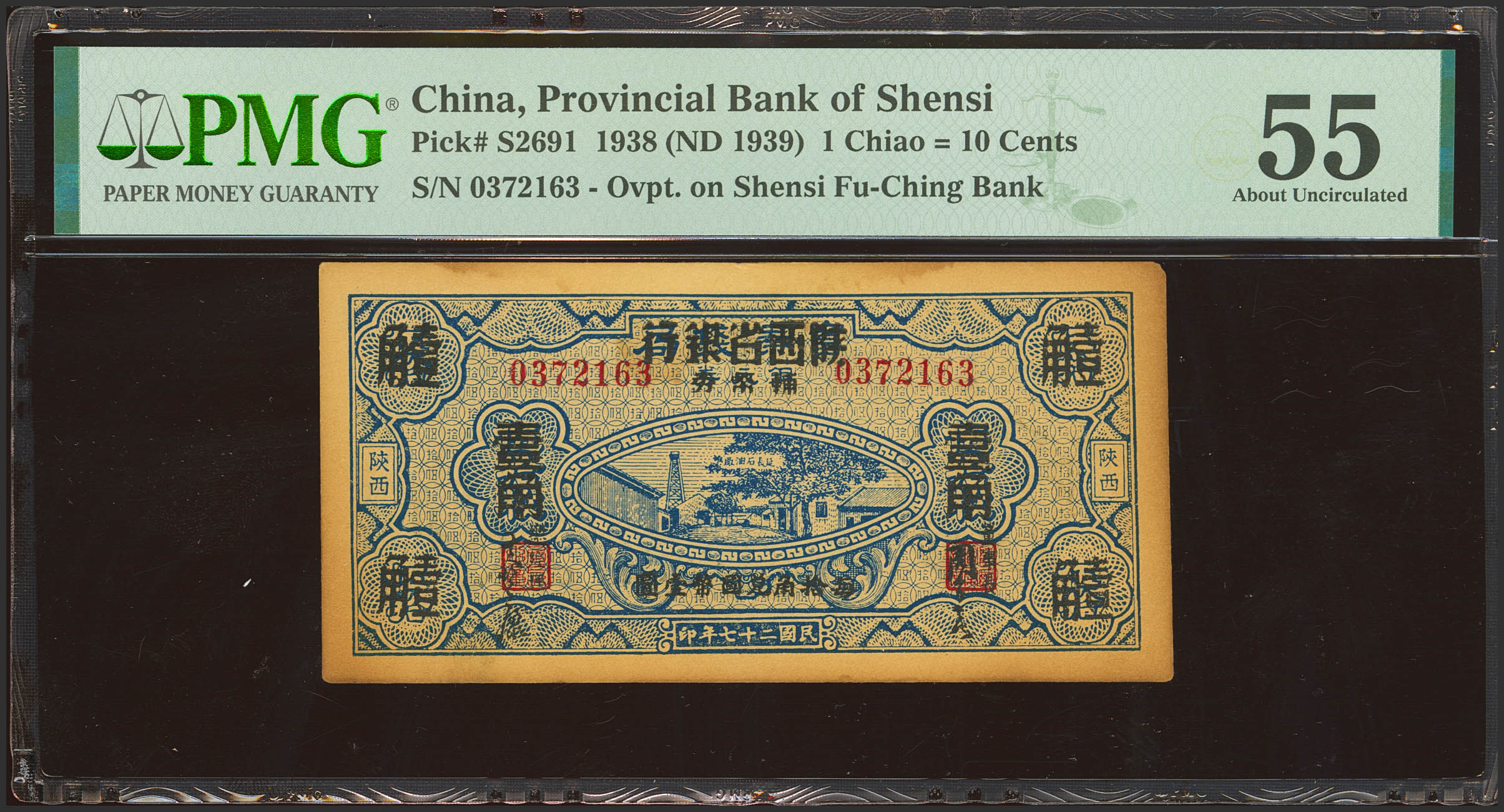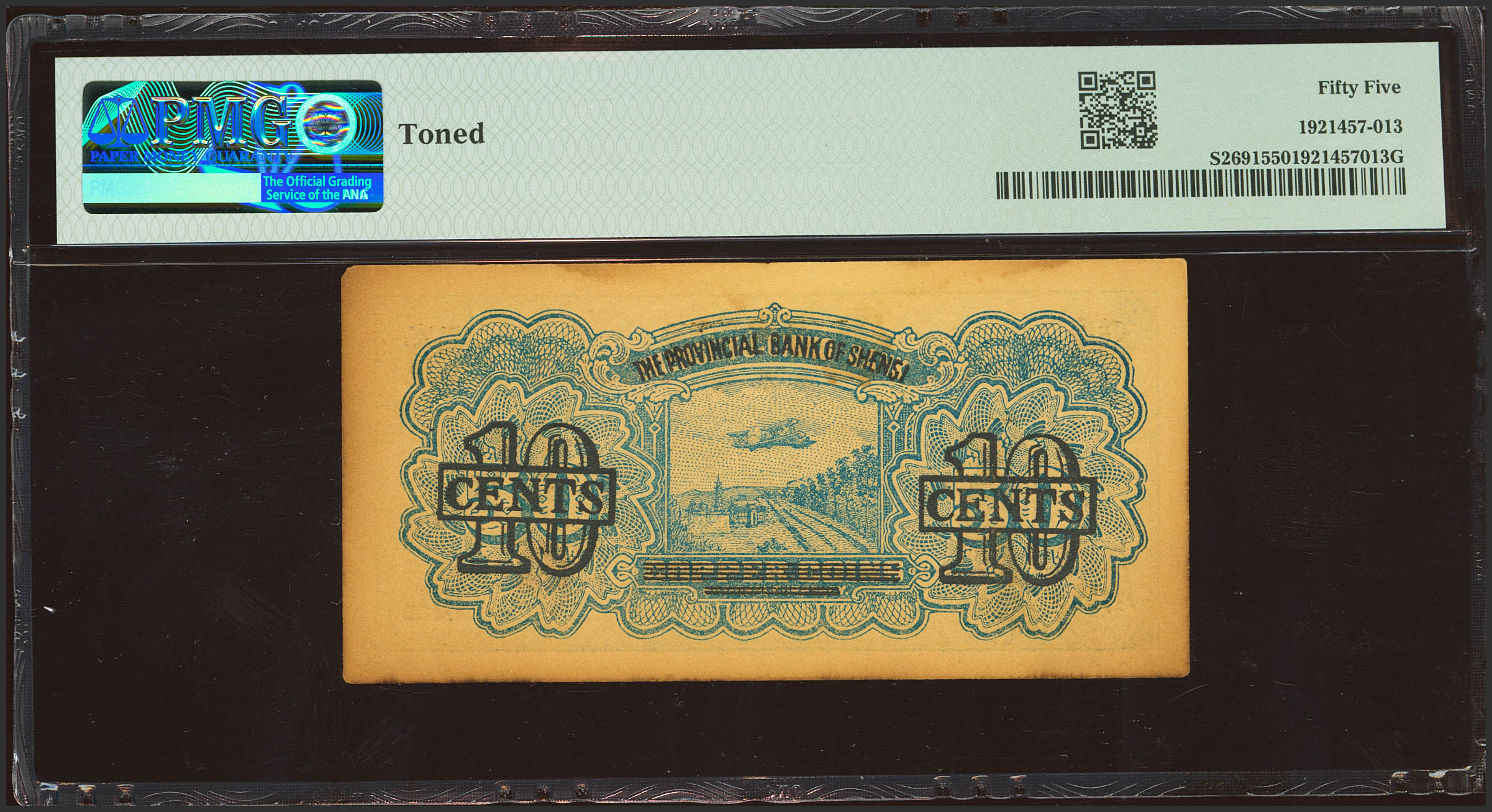 CHINA. 10 Cents. 1939. Provincial Bank of Shensi. (Pick: S2691). PMG55 (toned).