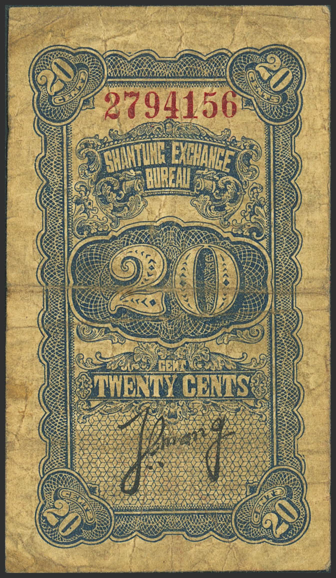 CHINA. 20 Cents. 1933. Shantung Exchange Bureau. (Pick: S2708A). Fine.