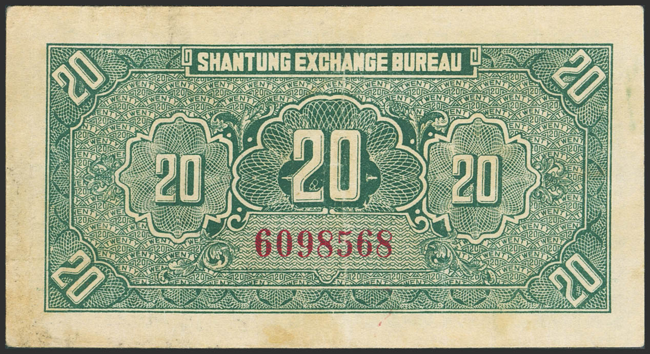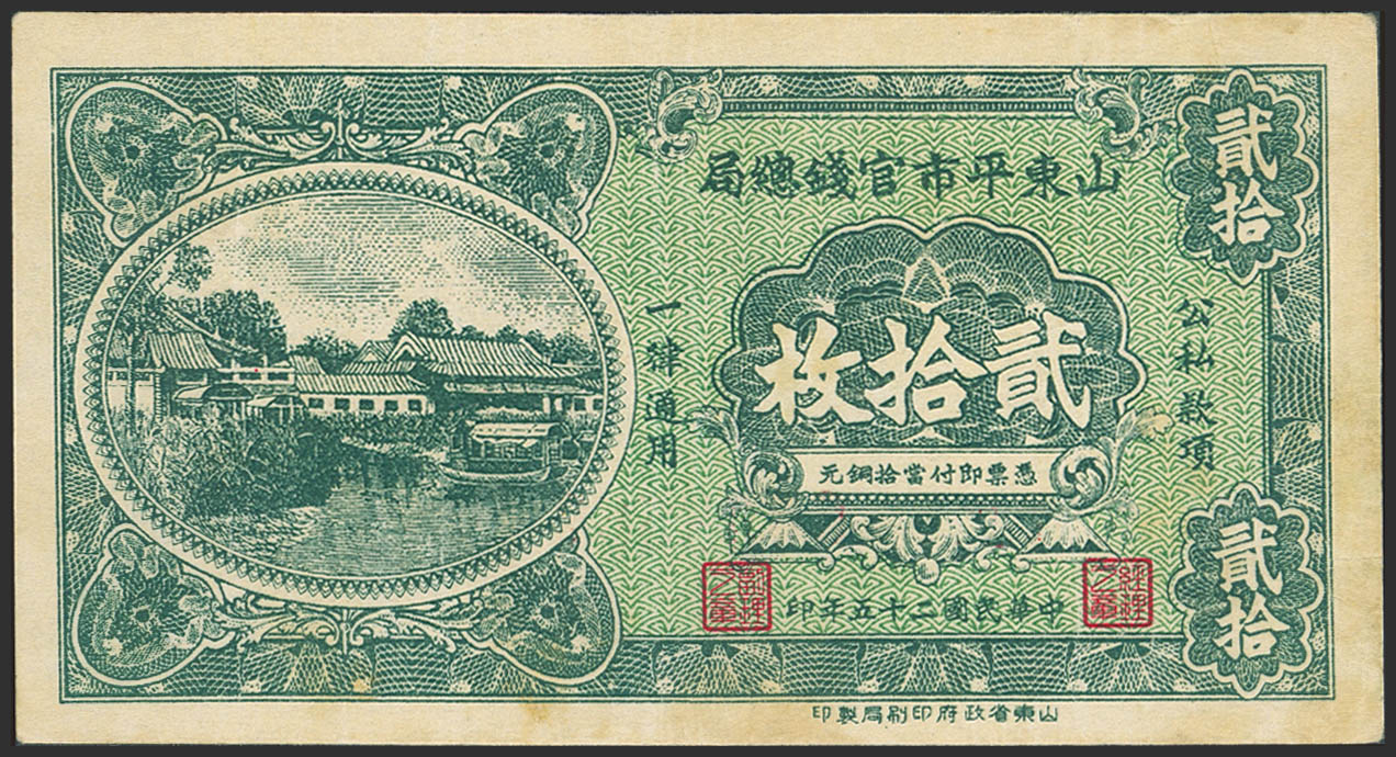 CHINA. 20 Coppers. 1936. Shantung Exchange Bureau. (Pick: S2710). More than Very Fine.