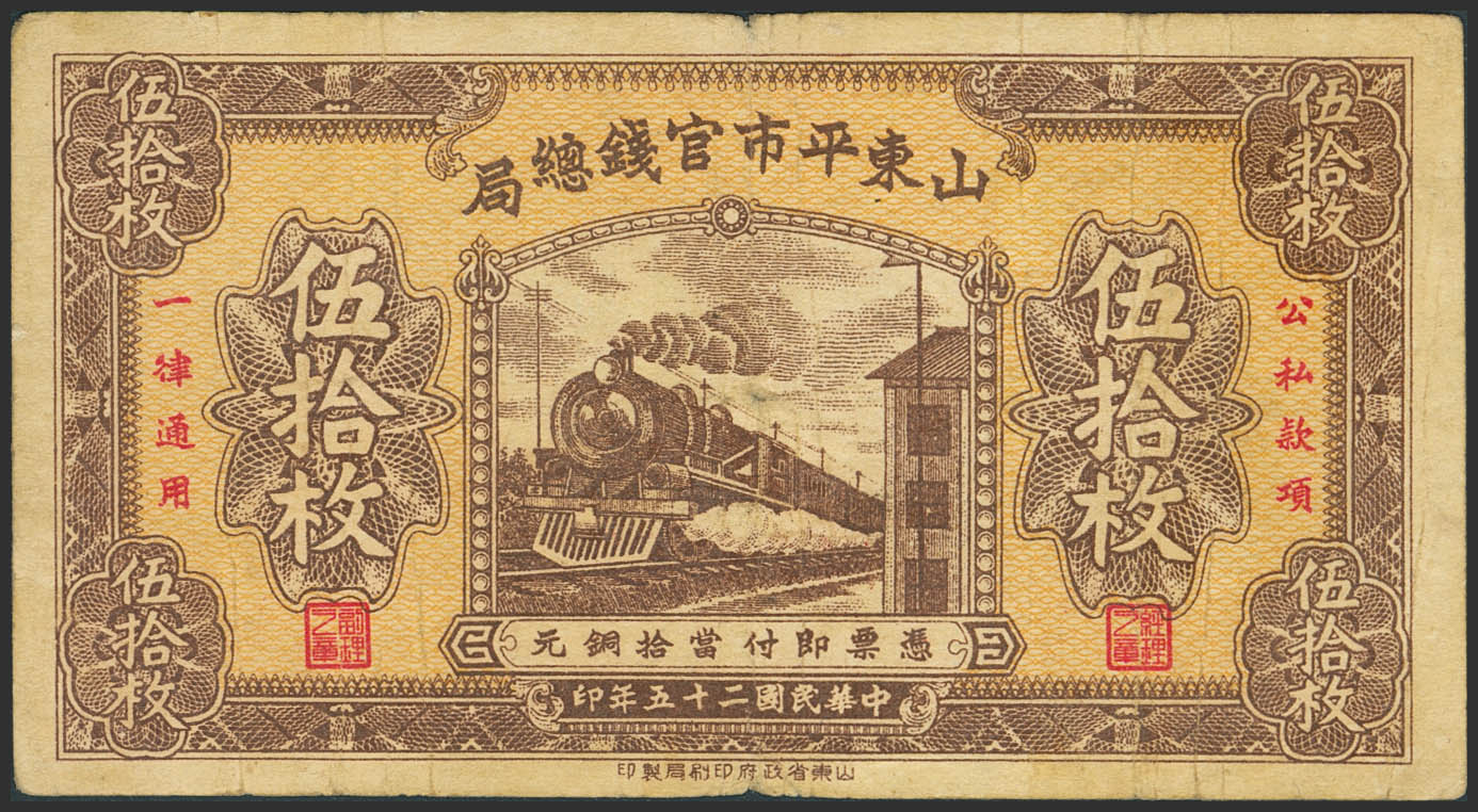 CHINA. 50 Coppers. 1936. Shantung Exchange Bureau. (Pick: S2711a). More than Very Fine.