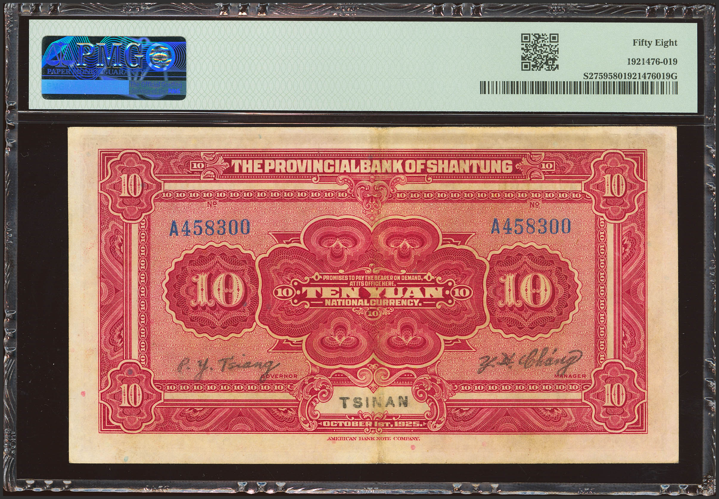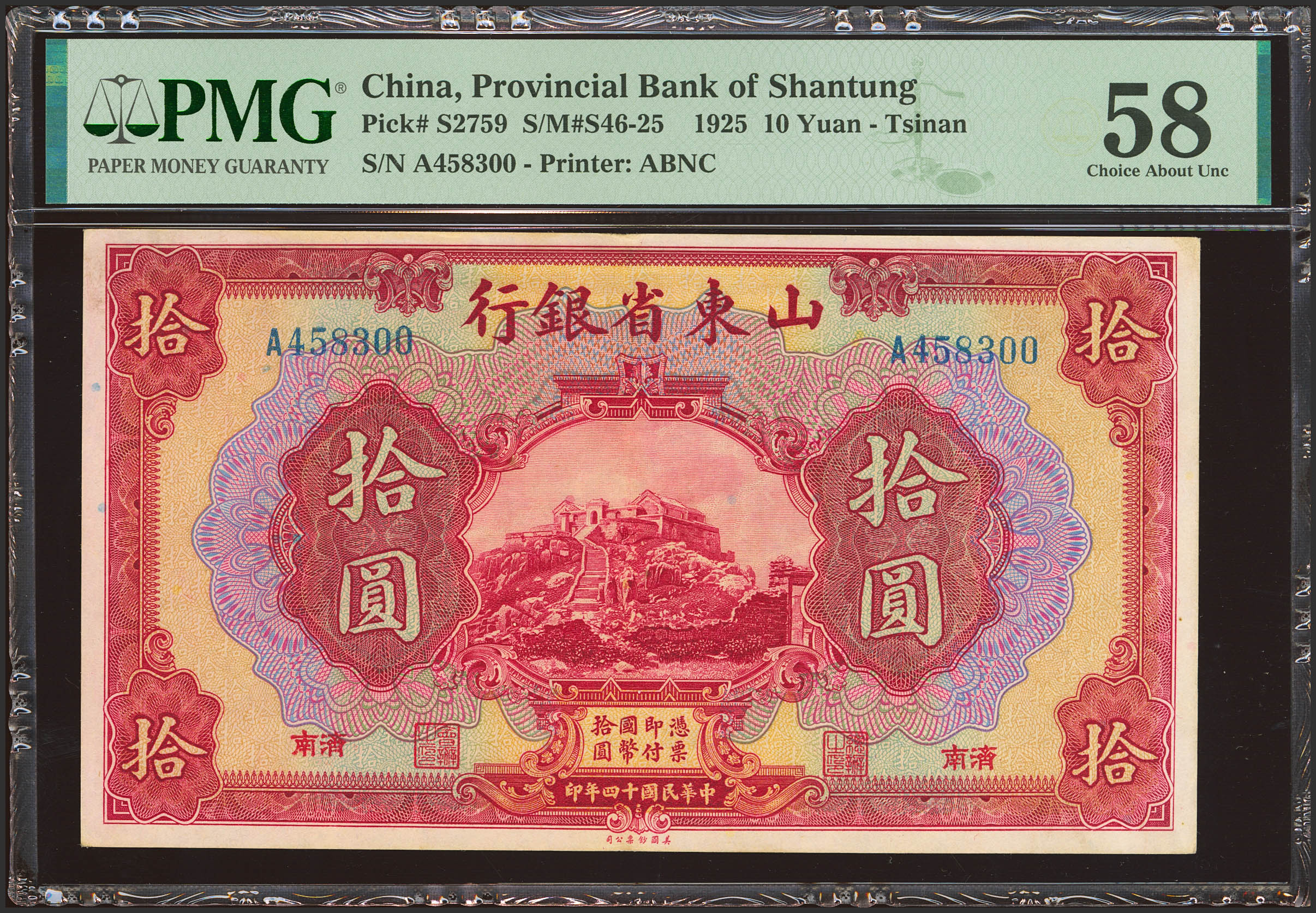 CHINA. 10 Yuan. 1 October 1925. Provincial Bank of Shantung. Tsinan. (Pick: S2759, SM: S46-25). PMG58.
